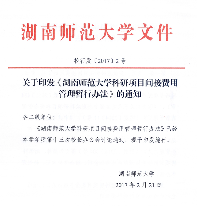 附件: 湖南师范大学科研项目间接费用管理暂行办法.pdf