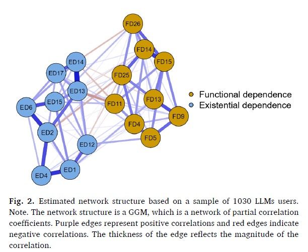研究结果表明,LDS(18个项目)展现出功能依赖和存在性依赖的双因子结构。验证性因素模型显示良好的拟合度,LDS还表现出良好的效标关联效度。后续模拟干预的计算结果表明,用户的存在性依赖主要由其对LLMs处理乏味和无聊任务的依赖驱动,而功能依赖则更多受用户对LLMs全能性信念的影响。