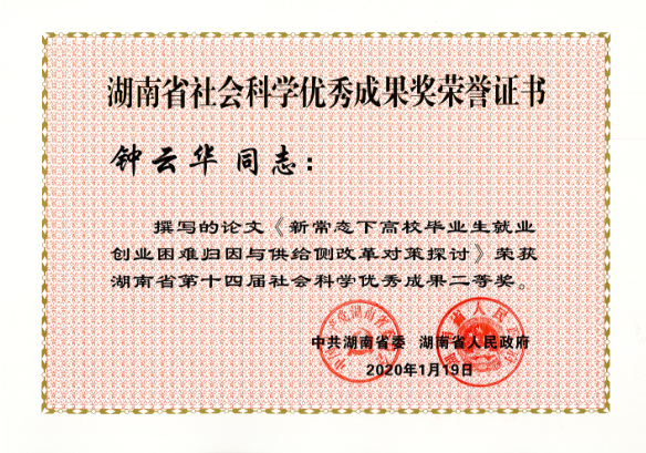易红郡教授研究成果获得湖南省第四届教育科研成果一等奖