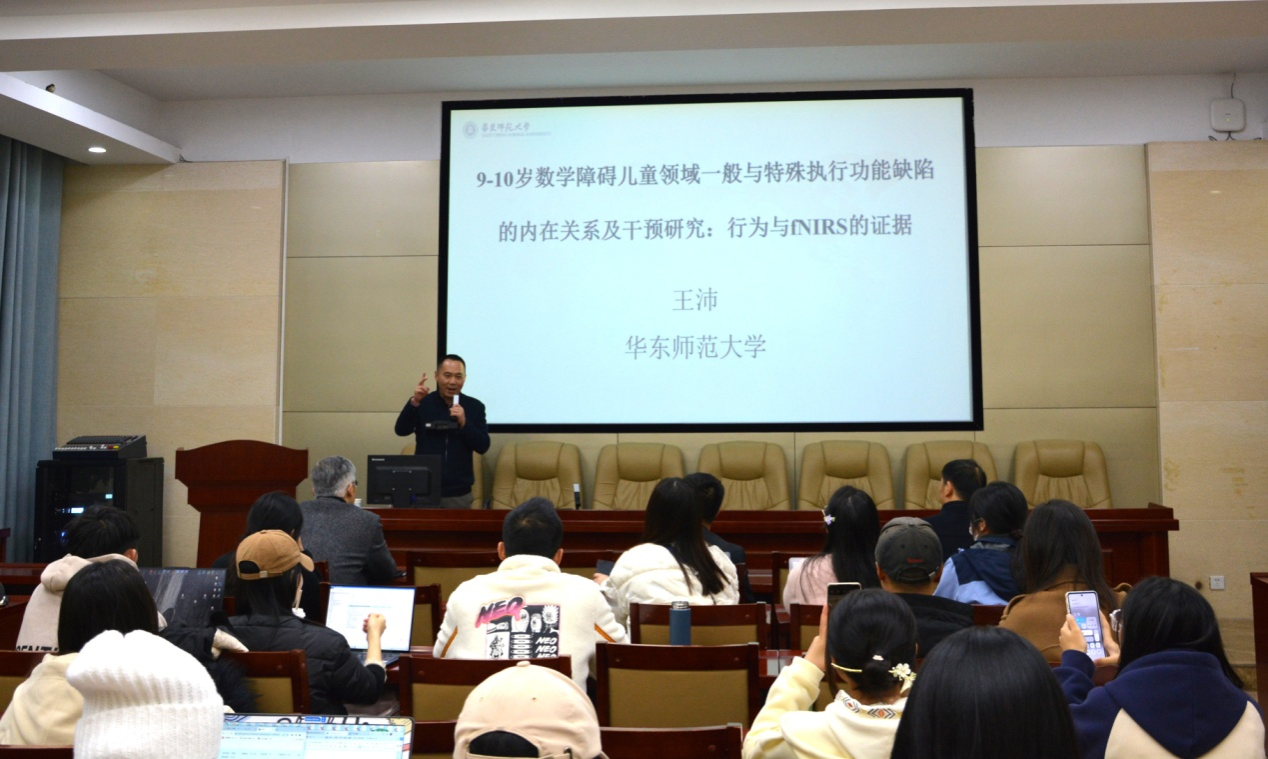 (通讯员 周莹 刁会)11月11日下午,华东师范大学教育学部博士生导师、紫江学者特聘教授、上海市曙光学者、教育部“新世纪”人才王沛教授在教育科学学院102教室,做了“数学学习障碍儿童领域一般与特殊执行功能缺陷的内在关系及干预研究:行为与ANIRS的证据”的学术讲座。本次讲座由胡义秋教授主持。