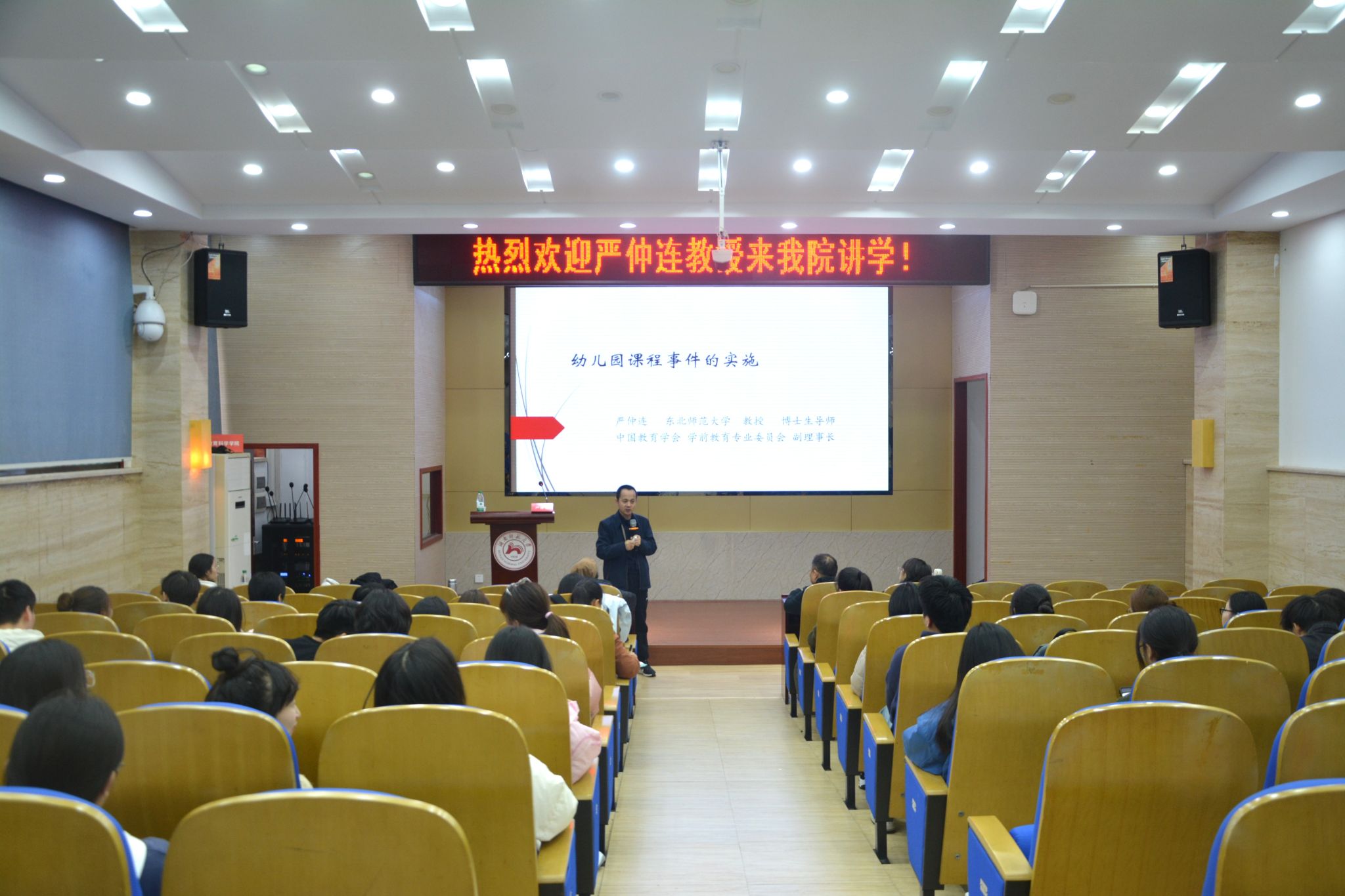 (通讯员 李婕)11月22日在我院学术报告厅,中国教育学会学前教育专业委员会副理事长、东北师范大学教授严仲连为我院师生作题为“幼儿园课程事件的实施”的学术讲座。学前教育系教授郑三元主持。