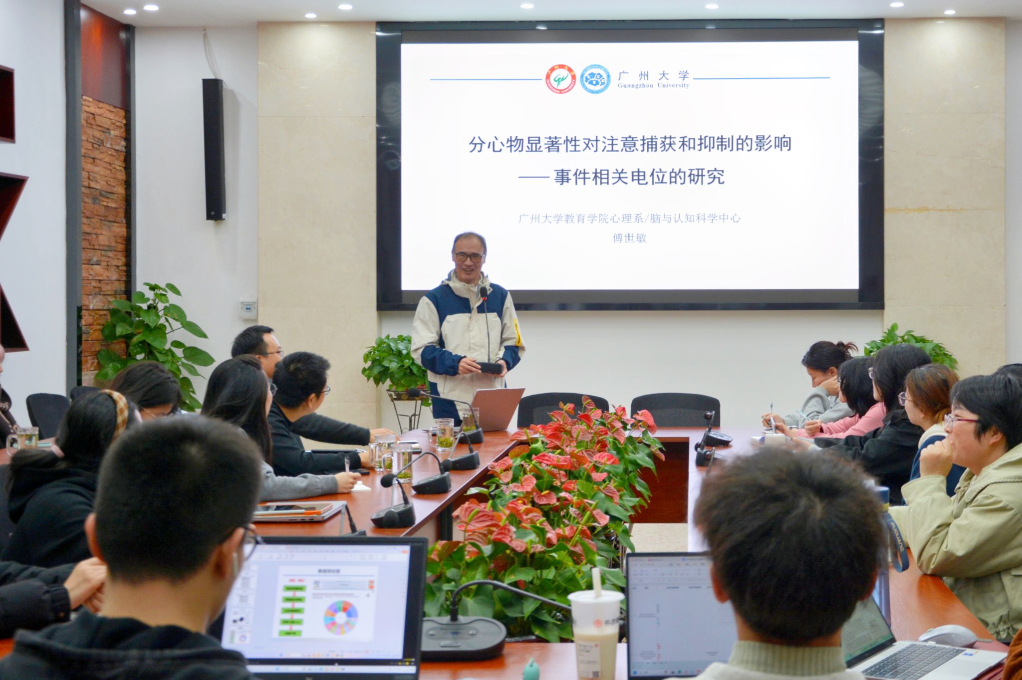 (通讯员 王紫琼)12月5日晚,珠江学者特聘教授、广州大学教育学院脑与认知科学中心主任傅世敏教授应邀莅临我院,为我院师生带来主题为“分心物显著性对注意捕获和抑制的影响-事件相关电位的研究”的学术讲座。
