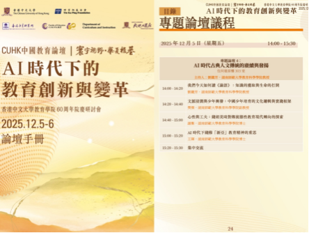 (通讯员 罗雨瑞)2025年12月5日-6日,湖南师范大学古典教育研究中心团队赴香港中文大学参加CUHK中国教育论坛“AI时代下的教育创新与变革”。期间,中心团队组织了以“AI时代古典人文传统的赓续与发扬”为题的专题论坛,旨在以古典精神回应AI时代的教育挑战,致力于在文化赓续与实践创新中重建教育的文化根基,探索为当下教育变革提供一条兼具哲学高度与文化厚度的中国路径。