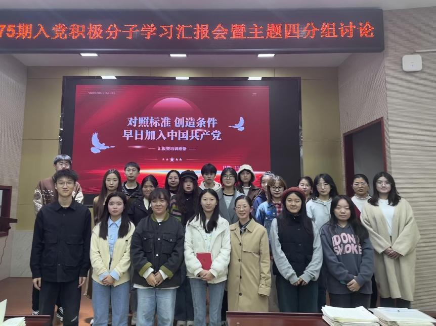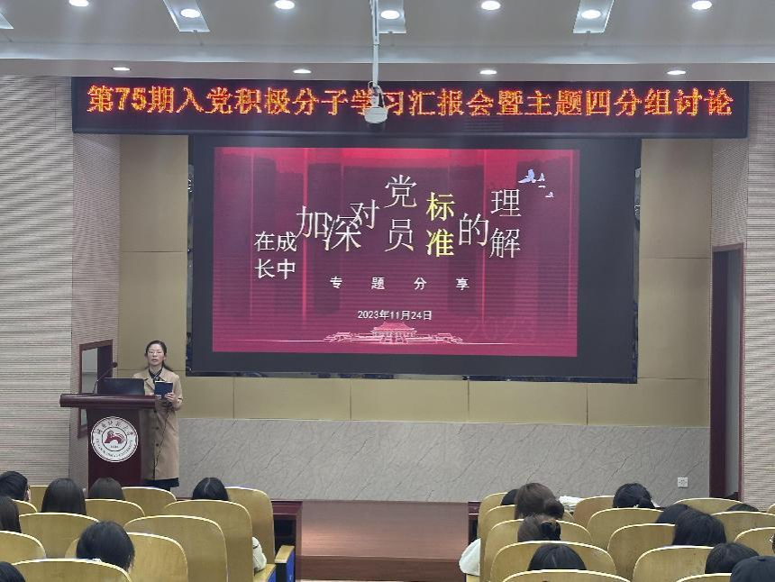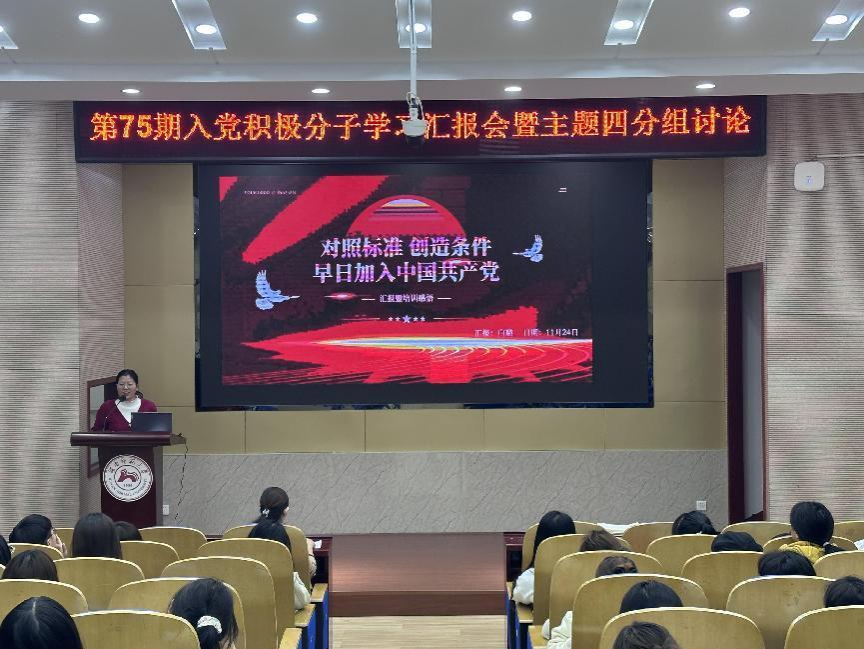 (通讯员 李晶 任轶)11月24日晚,教育科学学院分党校在学院101报告厅举行第75期入党积极分子学习汇报会暨专题四主题讨论。会议由培训班副班长任轶主持,学院副处级专职组织员王赛波出席活动。
