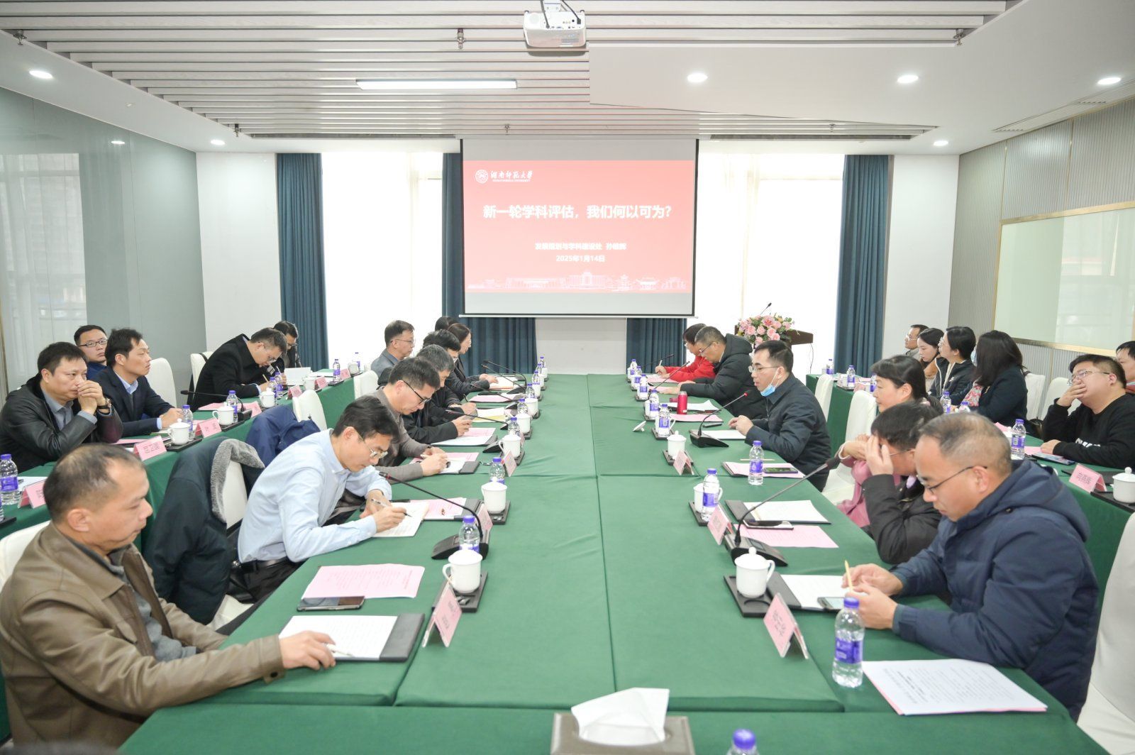 (通讯员 王曼宁)同心共筑教科梦,携手共进谱新篇。为全面学习贯彻党的二十大、二十届三中全会和全国高校党建工作会议精神,推动学院各项工作高质量发展,2025年1月14日,教育科学学院召开了主题为“筑梦·强基·提效”的“党建+学科建设与学院发展”工作务虚会。会议由学院党委书记向发意主持,学校学科建设与发展规划处副处长孙雄辉、外国语学院党委书记沈贤岚作为特邀嘉宾与会指导。学院的学科负责人、学科方向主要带头人、学院班子成员、各系主任、党支部书记、工会委员和行政科室负责人等参会。