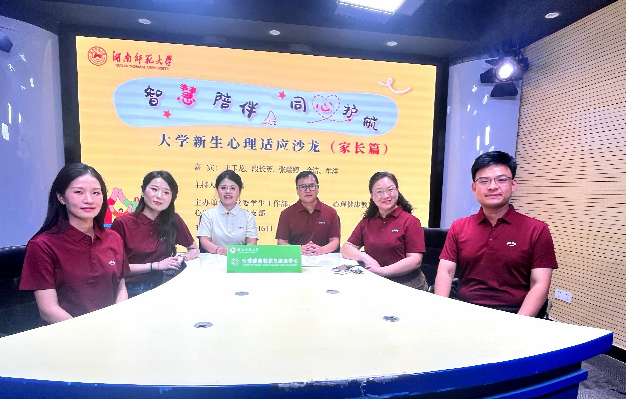 (通讯员 李凌秋 欧阳熙 巫秋雯 李艺)为深入贯彻党的二十大精神,全面落实立德树人根本任务,积极响应联系学院工作的学校党委负责同志提出的“心理学系教师要为全校师生心理健康提供保障服务”要求,践行学院“五心育人”之“心理教育健心”理念,2025年9月16日晚7点,教育科学学院心理学系教师党支部携手学校心理健康教育与咨询中心,聚焦2025级新生心理适应问题,成功举办了“党建引领 心路启航——院校共同助力心理健康、家校携手赋能新生适应”主题“党建开放日”活动。活动创新采用“线上直播访谈+线下联动研讨”双轨并行模式,线上主会场设在学校励德楼星空直播间,面向全校2025级新生及家长实时直播,分为学生篇和家长篇;线下分会场设于教育科学学院七楼会议室,学院党委书记向发意、副院长丁道群、专职组织员王赛波、心理学系教师党支部党员、心理学专业学生党员同步收看直播并开展线下研讨。