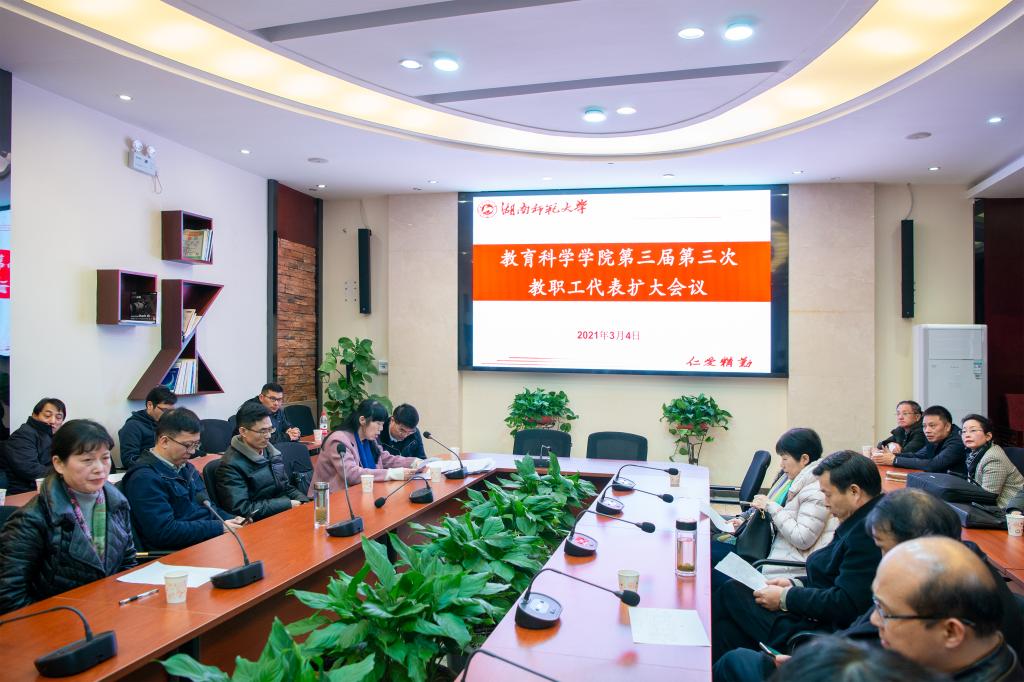 (通讯员 于抒含刘佳伦)3月4日下午,教育科学学院于学院七楼教工之家召开了第三届第三次教职工代表扩大会议。会议由院党委书记汪植英主持。