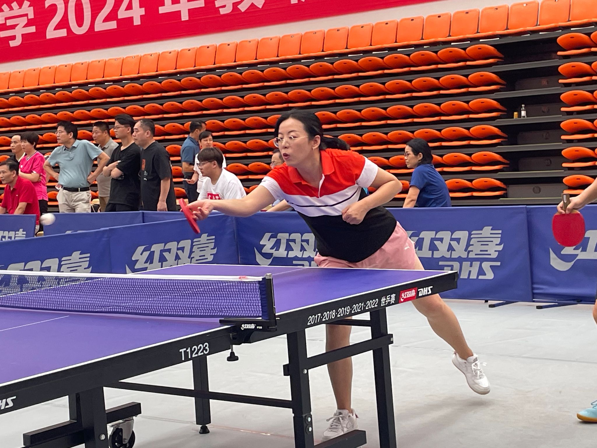 比赛现场,教育科学学院代表队的队员们身着统一的运动服,精神饱满,斗志昂扬。他们挥汗如雨,全力以赴地投入到每一场比赛中。无论是直拍、横拍还是扣球,都展现出了高超的球技和精湛的技巧。队员们在场上互相鼓励、默契配合,充分展现出了团队的凝聚力和战斗力。他们用自己的行动诠释了“友谊第一、比赛第二”的体育精神,传递了健康向上的正能量。他们的拼搏精神和团队协作精神,也将成为学院师生共同学习的榜样。