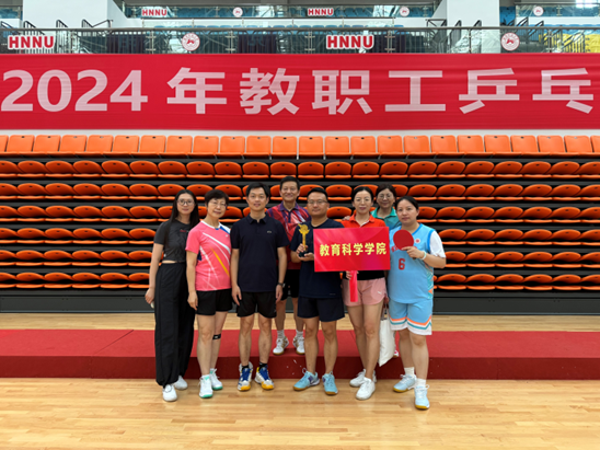 6月21日,我校举办的教职工乒乓球团体赛圆满落幕。在众多参赛队伍的激烈角逐中,教育科学学院代表队凭借出色的发挥和团队协作精神,最终荣获了本次比赛的第七名,展现了教育科学学院教职工的风采。