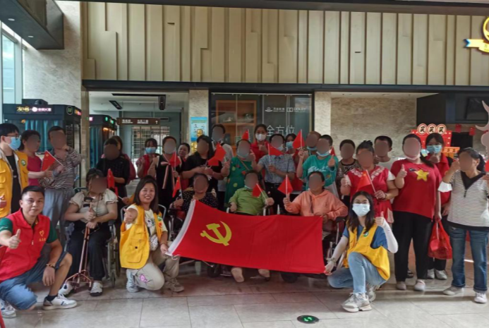 活动开始前,志愿者对活动场地进行布置,并将行动不便的参与者接送至万达影城。本次活动以观看电影《我和我的家乡》来迎接二十大。为营造良好观影体验,负责人准备了可乐和爆米花等零食并进行发放。活动期间,志愿者为参与者提供公共卫生间指引、协助入座等服务。观影结束后,五名志愿者和两名社工将活动场地清扫干净,并将行动不便的参与者送至家中。至此,活动结束。