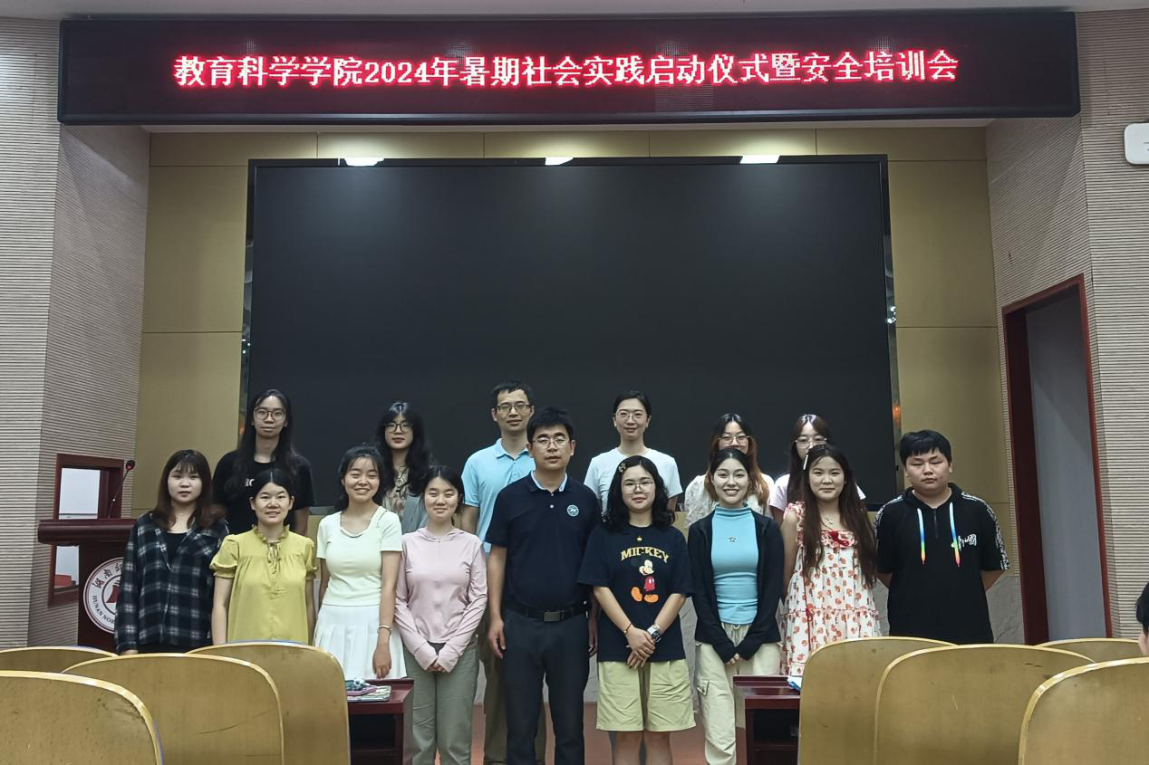 (通讯员 柳知佩 巫刘佳)7月3日下午,教育科学学院于院101报告厅举办2024年暑期社会实践活动启动仪式暨安全培训会。学院党委副书记欧阳文芳、实践团指导老师代表罗帅、院团委书记谭梦老师及学工办全体老师,各实践团队长及部分队员参与此次会议。