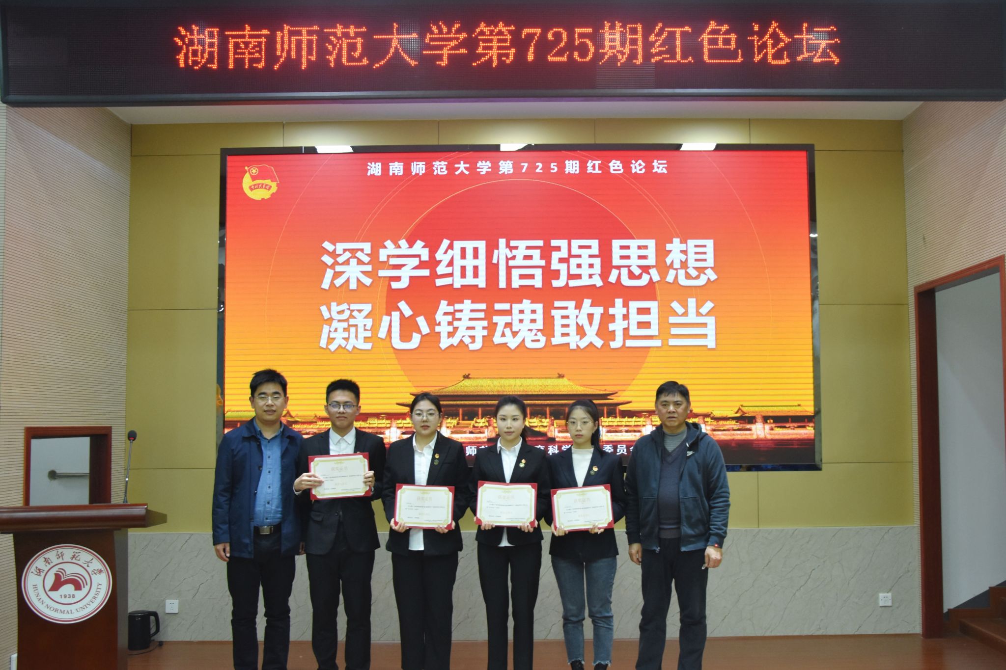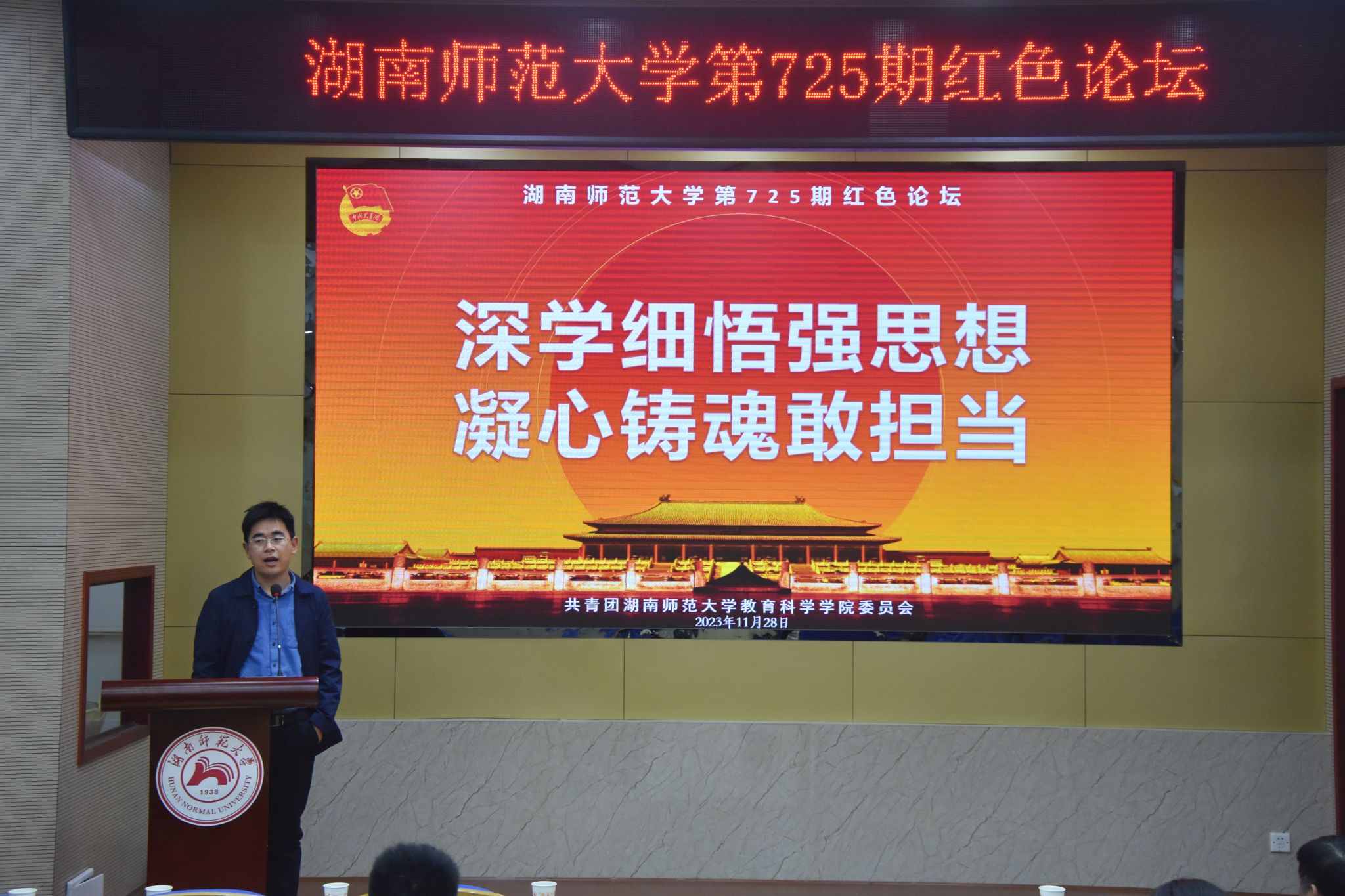 (通讯员 贺佳蓓 龙思思)11月28日晚,教育科学学院团委在学院101报告厅开展以“深学细悟强思想 凝心铸魂敢担当“为主题的湖南师范大学第725期红色论坛。教科院党委副书记欧阳文芳、教育学系退休教师张传燧教授、院团委书记谭梦、学工办庞瑞宇、丁文珺作为嘉宾参加此次活动。