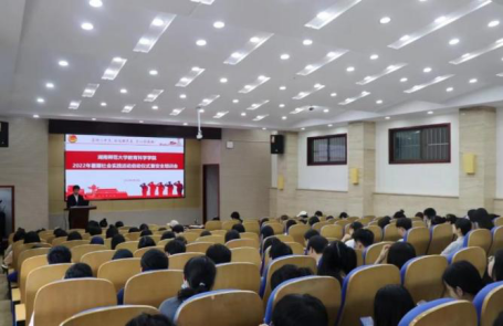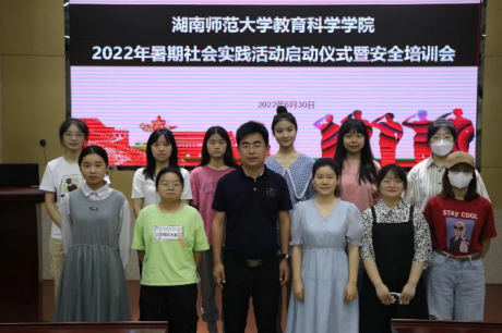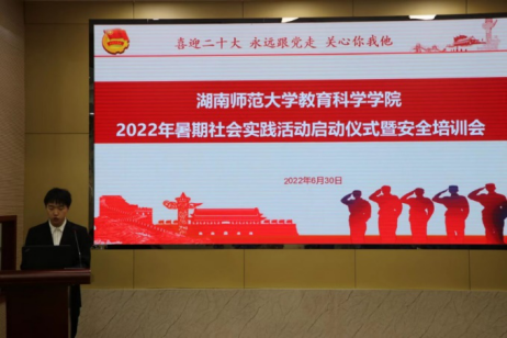(通讯员 陈孜曦)6月30日中午,教育科学学院于学院101报告厅举行2022年暑期“三下乡”社会实践活动启动仪式暨安全培训会,院党委副书记欧阳文芳、院团委书记谭梦出席。