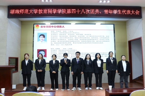 (通讯员 白晓坤 陈嘉鑫 何彤)9月1日晚,教育科学学院于学院101报告厅召开了第四十八次团员、青年学生代表大会,校团委书记陈天嵩,教科院党委副书记欧阳文芳、院团委书记谭梦、特殊教育系青年教师钟雪以及学工办老师庞瑞宇、丁文珺、石新平出席此次会议。