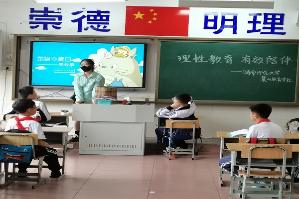 (通讯员 饶亚梅)5月26日下午,教育科学学院麓山教育学社组织开展的“走进你的心,筑梦新征程”志愿活动于岳麓区科教小学举行。此次活动以“理性教育,有效陪伴”为主题,志愿者梁文畅担任此次活动主持人,科教小学六年级两个班级与17位志愿者参与其中。
