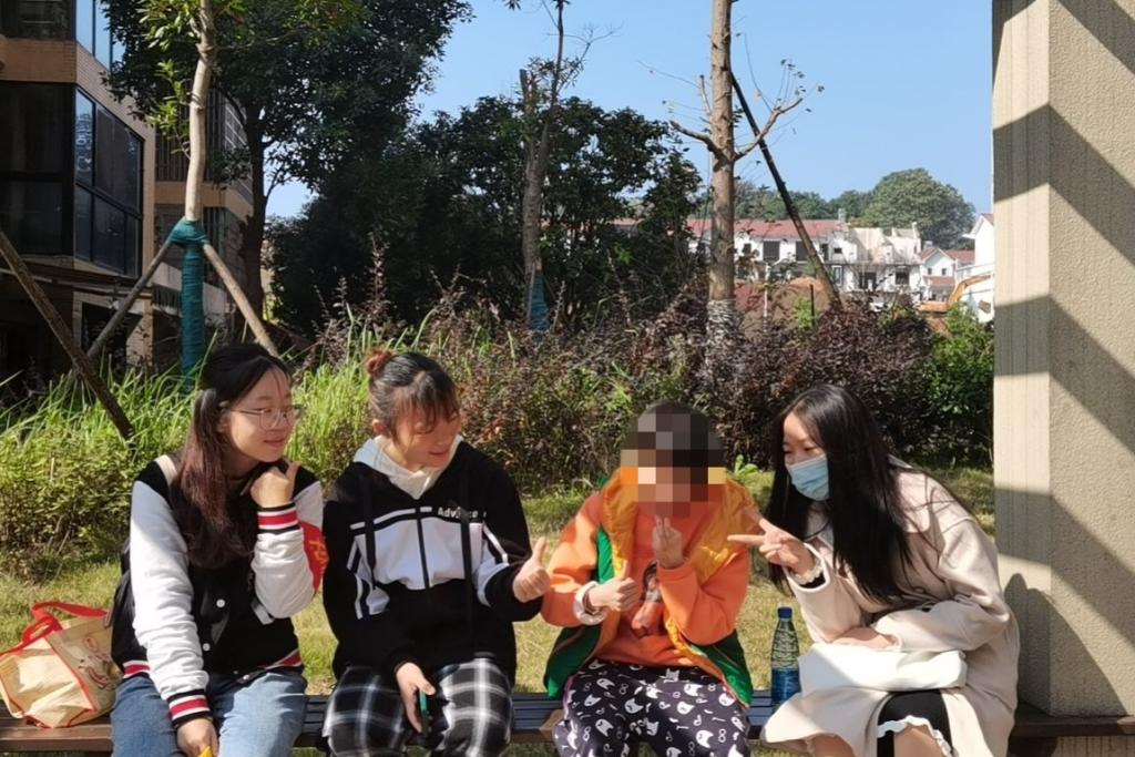 18日下午,五名志愿者分为两组进行活动。刘华玲带领两名志愿者走访“星星女孩”,和女孩一起聊天,并教给她一些生活常识。凌群艳带领三名另外志愿者去到“飞翔阿姨”家中,陪阿姨观赏岳麓山的秋景并合影留念。