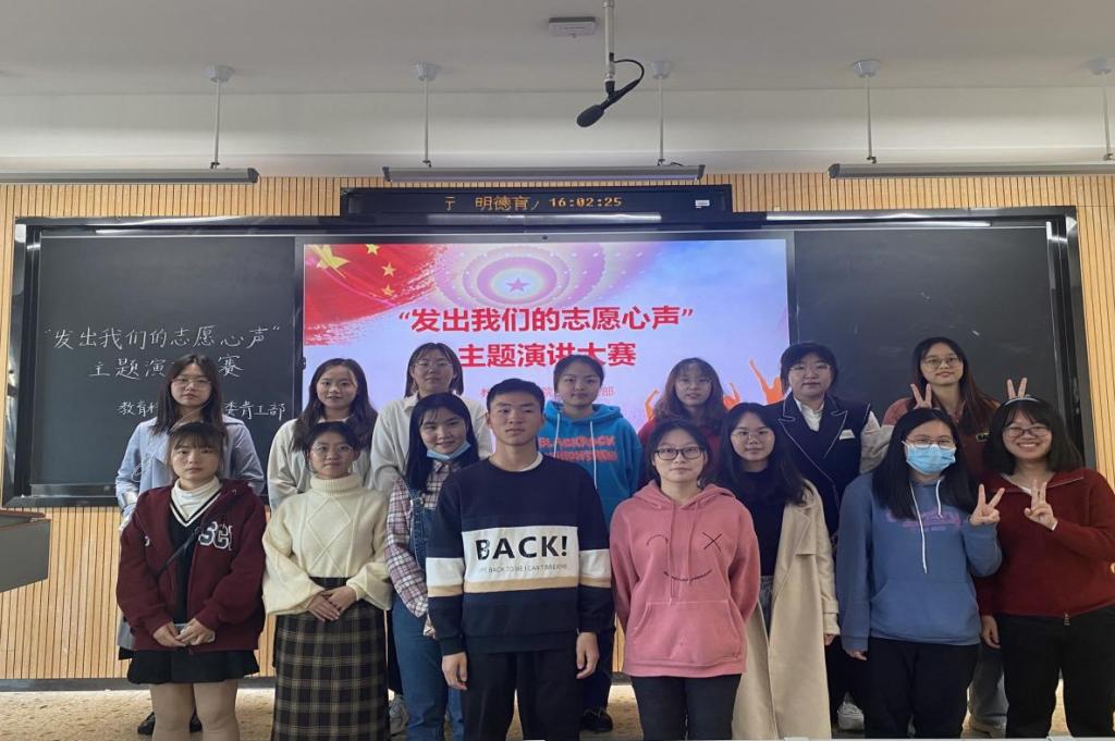 (通讯员 王艺橙 李晶婷)11月14号下午,教育科学学院团委青年志愿者工作部在教科院315教室举办了“发出我们的志愿心声”主题演讲比赛。教科院团委工作负责人谭梦、20级辅导员丁文珺因事未能莅临现场,采取观看现场直播的方式为选手打分,教科院团委青工部负责人王艺橙于活动现场担任评委。此次演讲大赛由青工部志愿者卢柯宇、刘佳雨担任主持人,共有13名参赛选手参与此次比赛。
