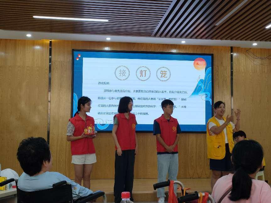 志愿者在活动开展前对活动场地进行布置,并将行动不便的参与者接送至王家垅公共服务中心。因本次活动与中秋相关,主持人使用短视频向大家普及中秋相关的故事。为增加活动参与度,负责人还设置了开盲盒、接沙包记名字和手指抓逃等小游戏。期间志愿者主要负责示范游戏规则、派送礼物和协助参与者制作祝福贺卡。活动的最后由六名志愿者和两名社工将活动场地清扫干净,并派其中两名志愿者将行动不便的参与者送至家中。至此,活动结束。