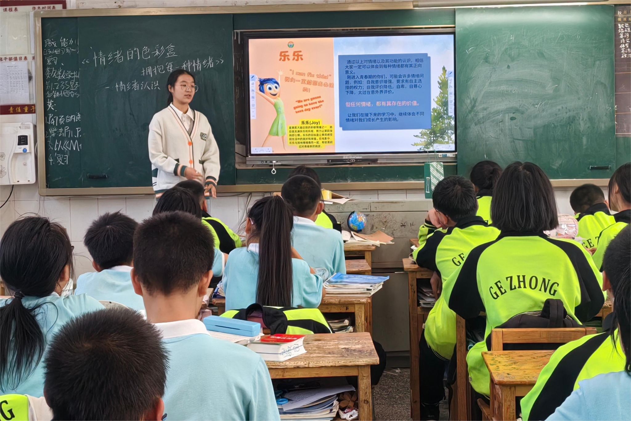 8名志愿者到达格塘中学后,由粟蒙凯介绍学校学情并对授课纪律问题作出强调。在“我是谁”课堂上,王梦宾以游戏互动的方式激励同学们主动认识自我。随后,杨嘉欣围绕“世界上没有两片一模一样的树叶”主题展开课堂,启发同学们欣赏独一无二的自己。黄佳怡抛出“你想活出怎样的人生”的问题,组织同学们进行“人生拍卖会”,鼓励同学们笑对人生百态。罗倢雯谈及校园早恋,通过案例分析告诫同学们科学应对青春期早期的朦胧情感。观看完一段轻松有趣的动画片之后,喻子涵向同学们介绍了五彩斑斓的情绪,引导同学们做自己情绪的主人。