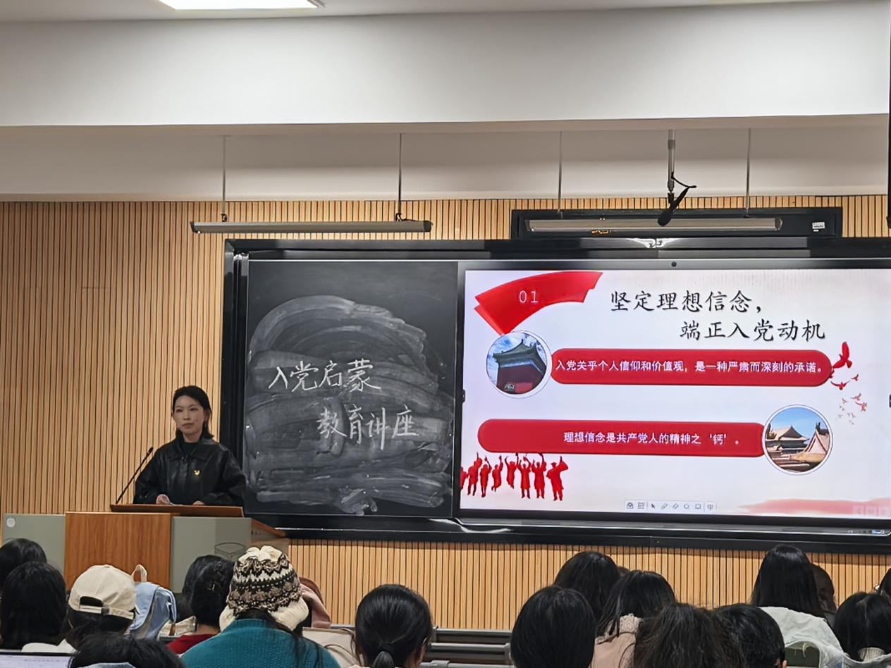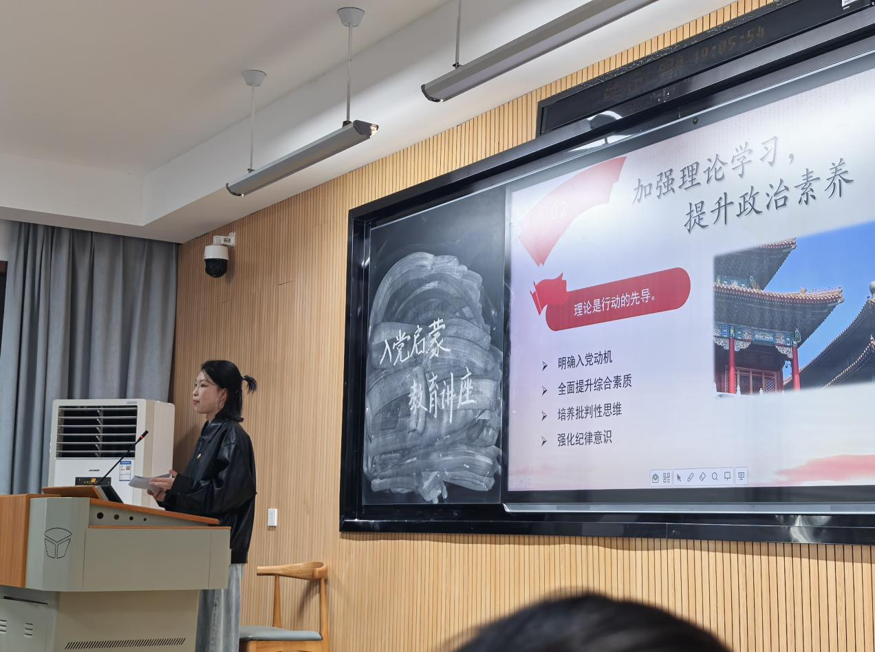 董思源主要从坚定理想信念、加强理论学习、积极参与实践、汲取榜样力量、善于反思自我以及入党流程这六个方面进行了详细的讲解。她强调,入党关乎个人信仰和政治认同,是对党组织庄严而深刻的承诺,只有在持之以恒的自我革命中不断端正入党动机,补足精神之钙,提升综合素质,锤炼过硬本领,才能收获持续进步、实现自我成长。