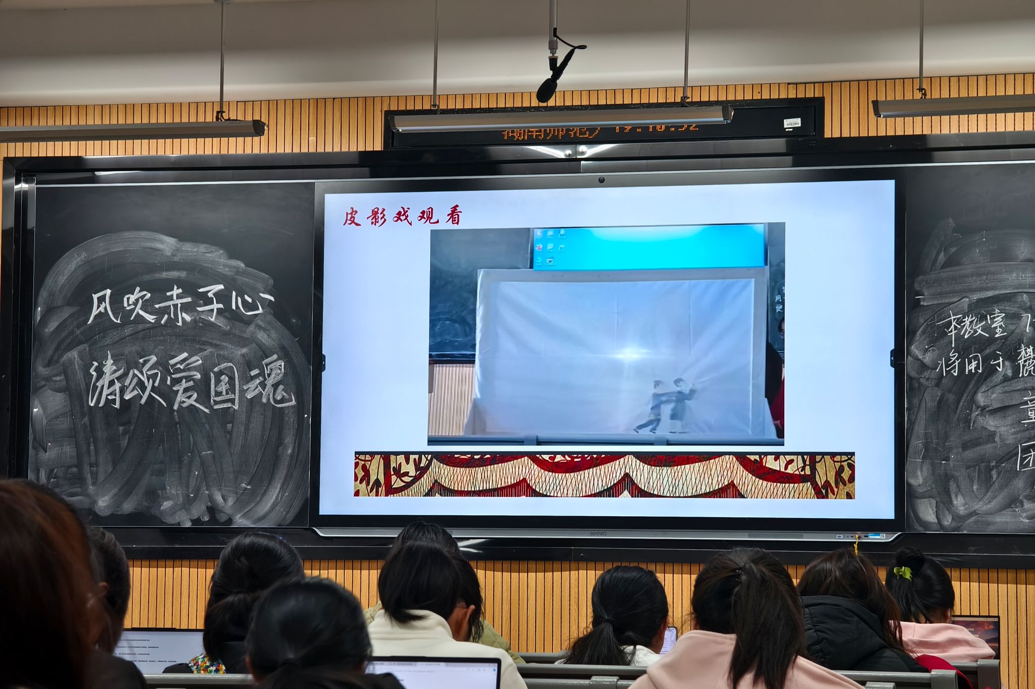 活动由童心巧艺社干事李建美主持,分为红色电影片段猜谜、皮影戏欣赏、击鼓传花知识问答三个环节。现场气氛热烈,同学们积极参与。
