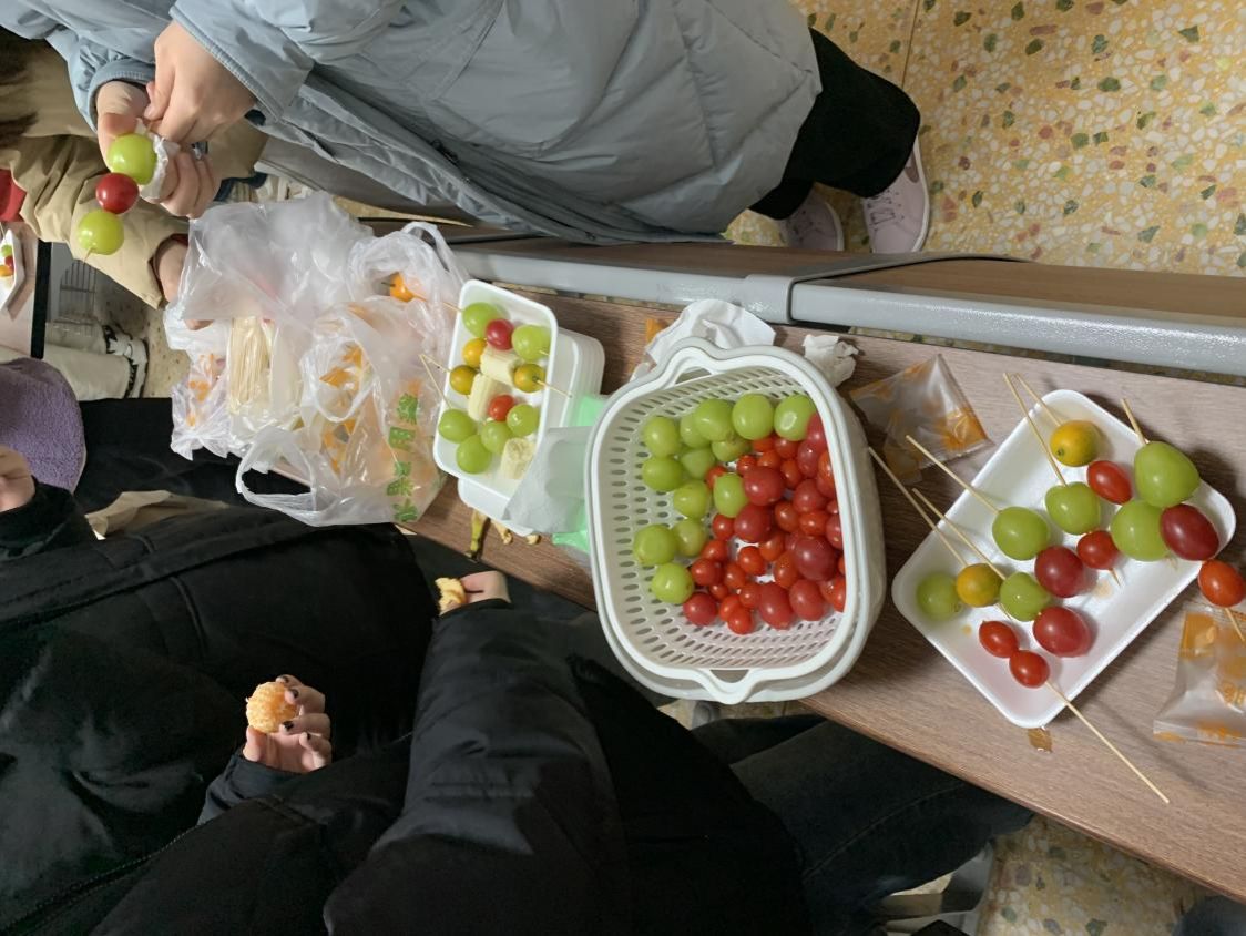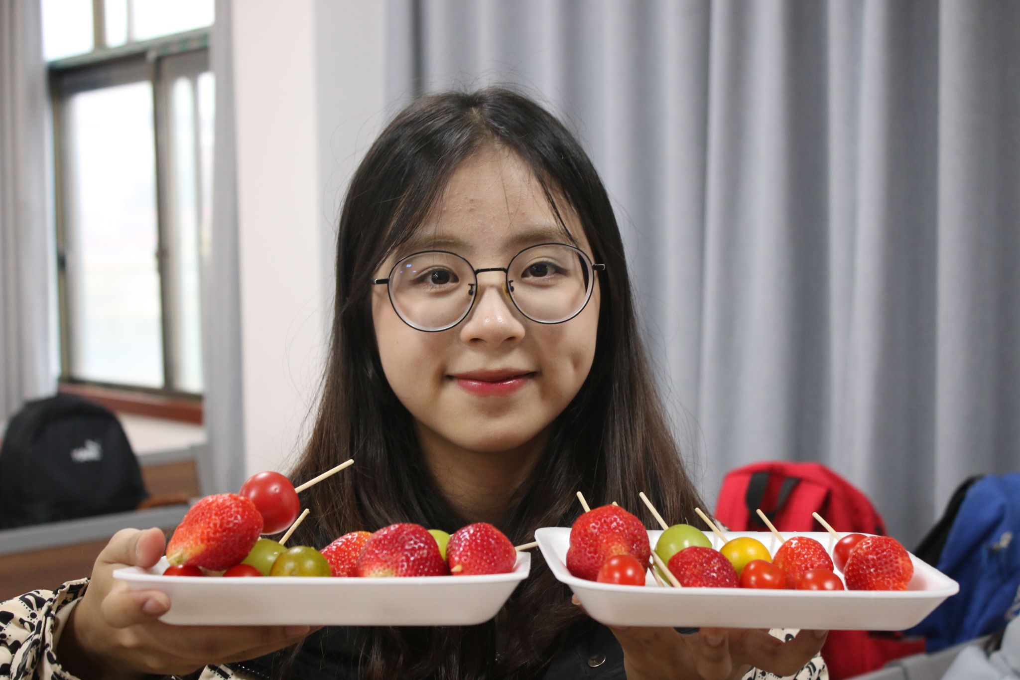 活动伊始,李欣雨简要介绍了活动制作流程,并强调卫生和安全的重要性。为保证活动的有序进行,李欣雨对全班同学进行了分组,每组分配一定的材料和工具,随后便开始串水果、熬糖浆等制作步骤。活动最后,各小组代表积极展示本组制作的“冰糖葫芦”,并分享制作过程中的学习收获和感悟。