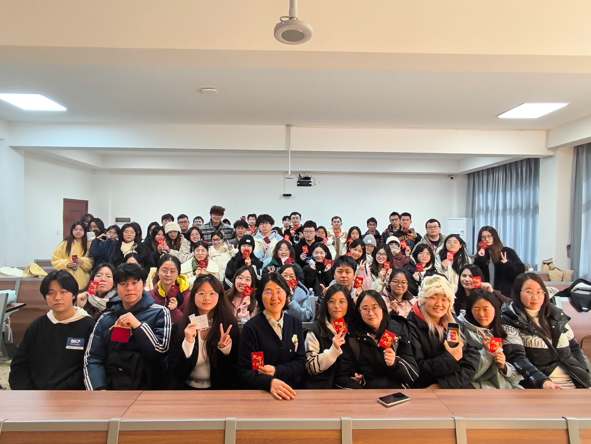 最后,同学们领取了新年红包并合影留念,象征着新的一年中一切顺利、事业有成、万事顺遂、财源广进。