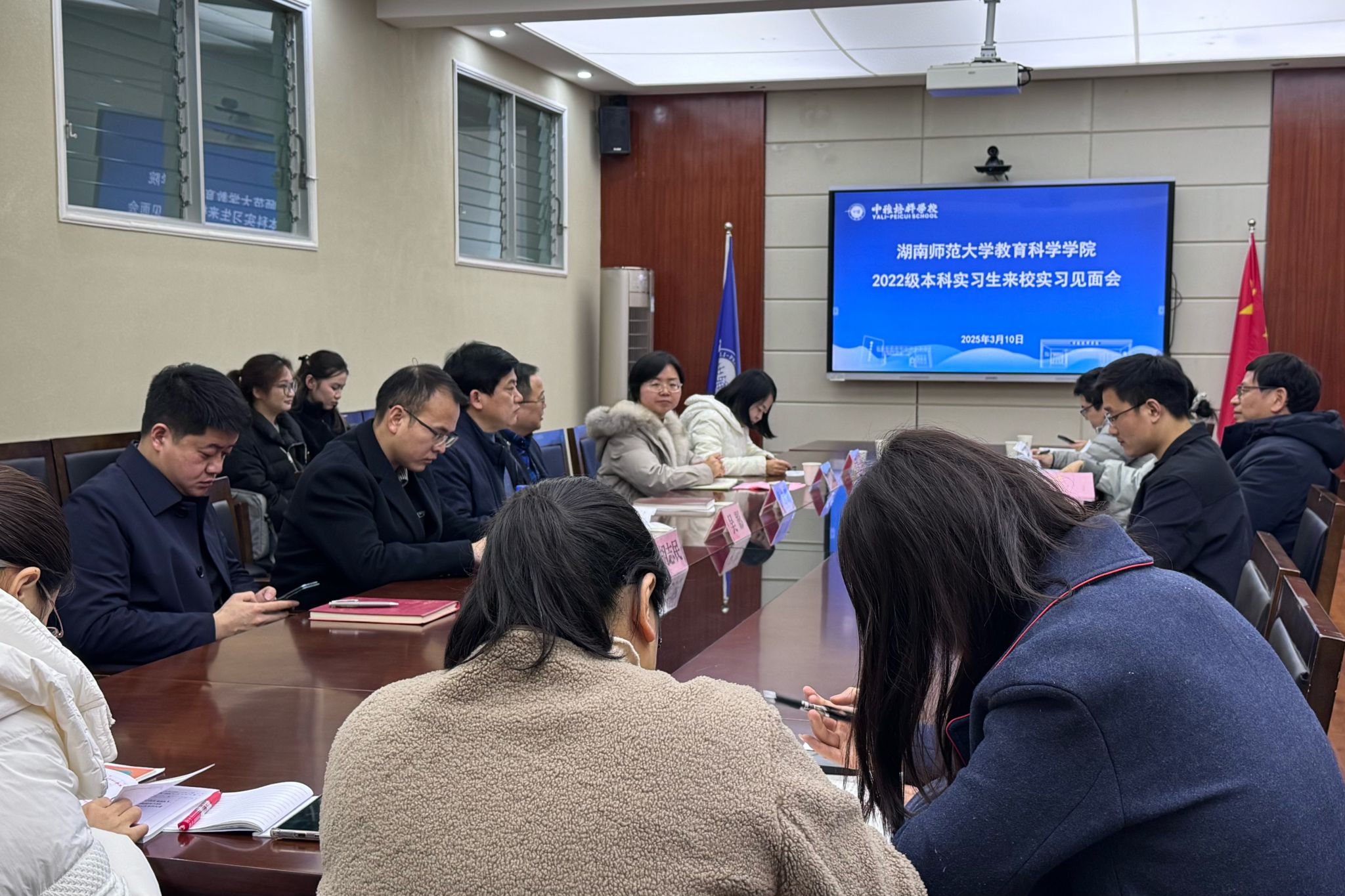 (通讯员 李雨彤 陈洋燕 张丽汶)3月10日上午,教育科学学院赴长沙市中雅培粹学校实习队于中雅培粹学校北校区行政楼四楼会议室开展进校实习见面会。实习队指导老师贾青、石献记,中雅培粹学校副校长曹志鹏及教科室、教务处等相关职能部门负责人出席,实习队全体队员参会。