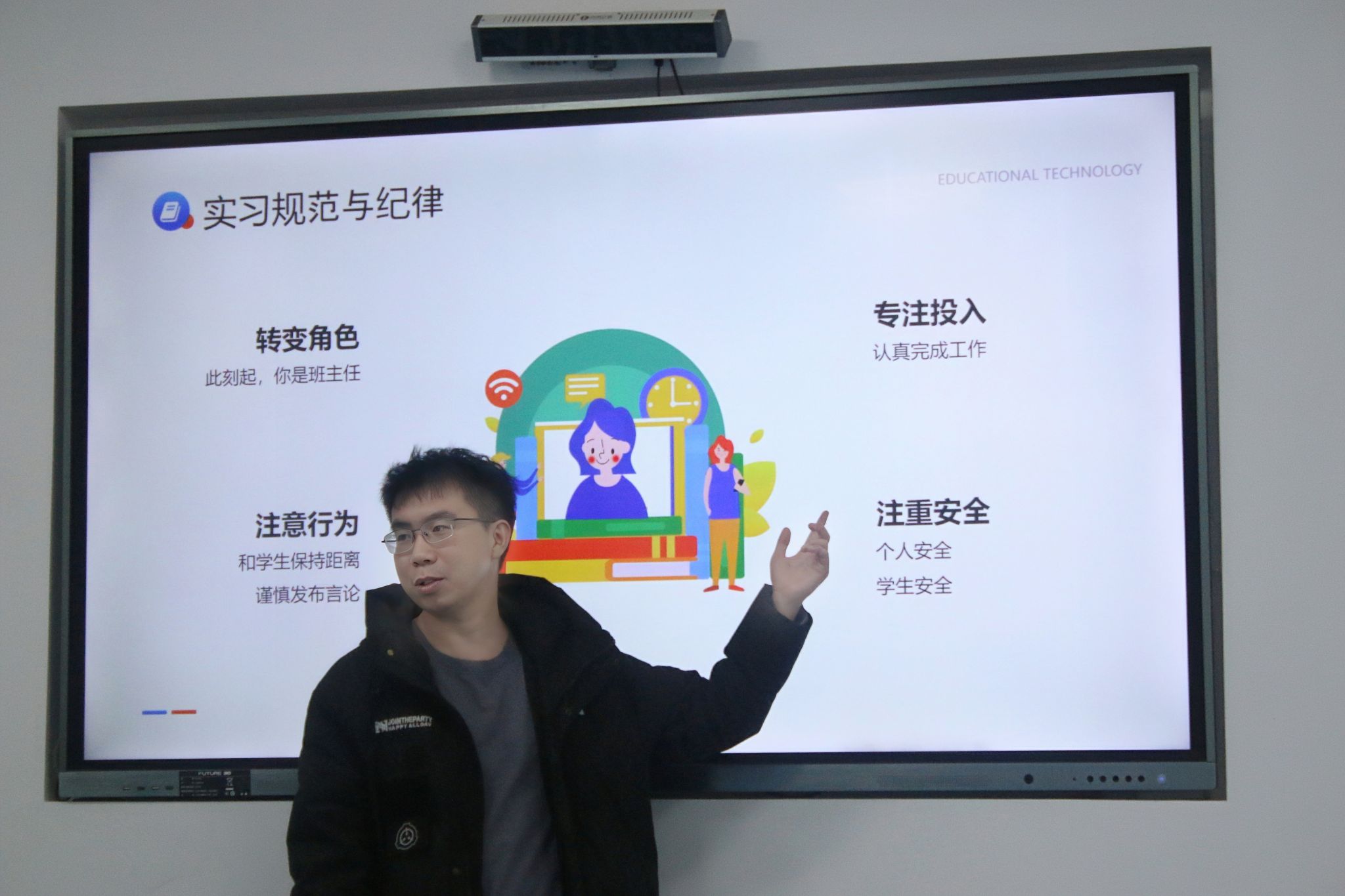 (通讯员 徐羡雯 付子强 田文玲)3月11日下午,教育科学学院(以下简称“教科院”)赴师大附中博才实验中学(湘江校区)实习队于学校博雅楼人工智能教室参与工作培训会。信息技术课题组教师汪阳主讲,全体实习队员参与。