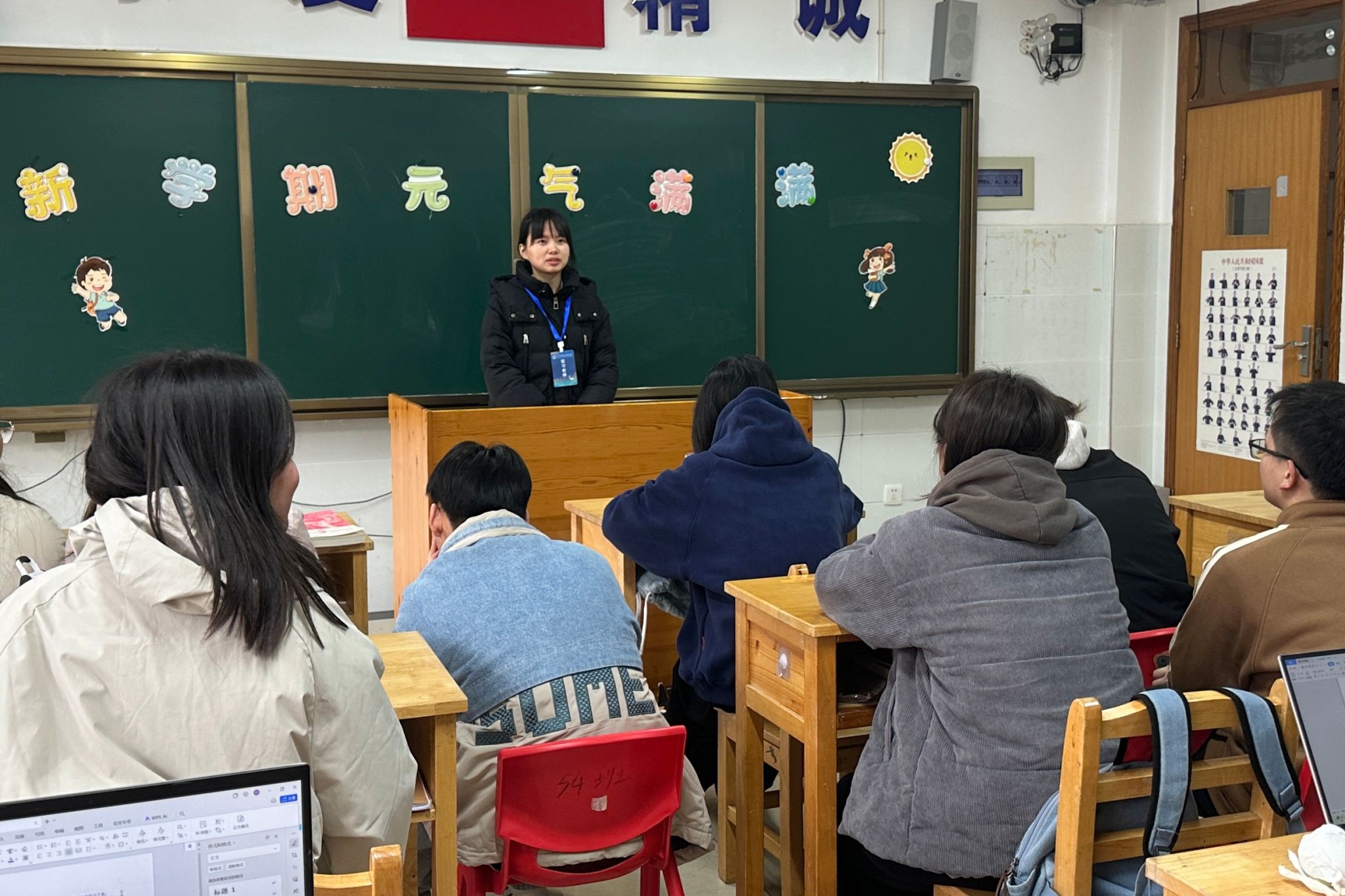会上,黄露漫首先对上周实习工作进行了全面总结,充分肯定了队员们认真负责的工作态度和积极向上的精神风貌。同时,黄露漫也针对上周工作中出现的问题,重点强调了听课纪律和拍照注意事项,要求全体队员严格遵守学校规章制度,维护实习队良好形象。