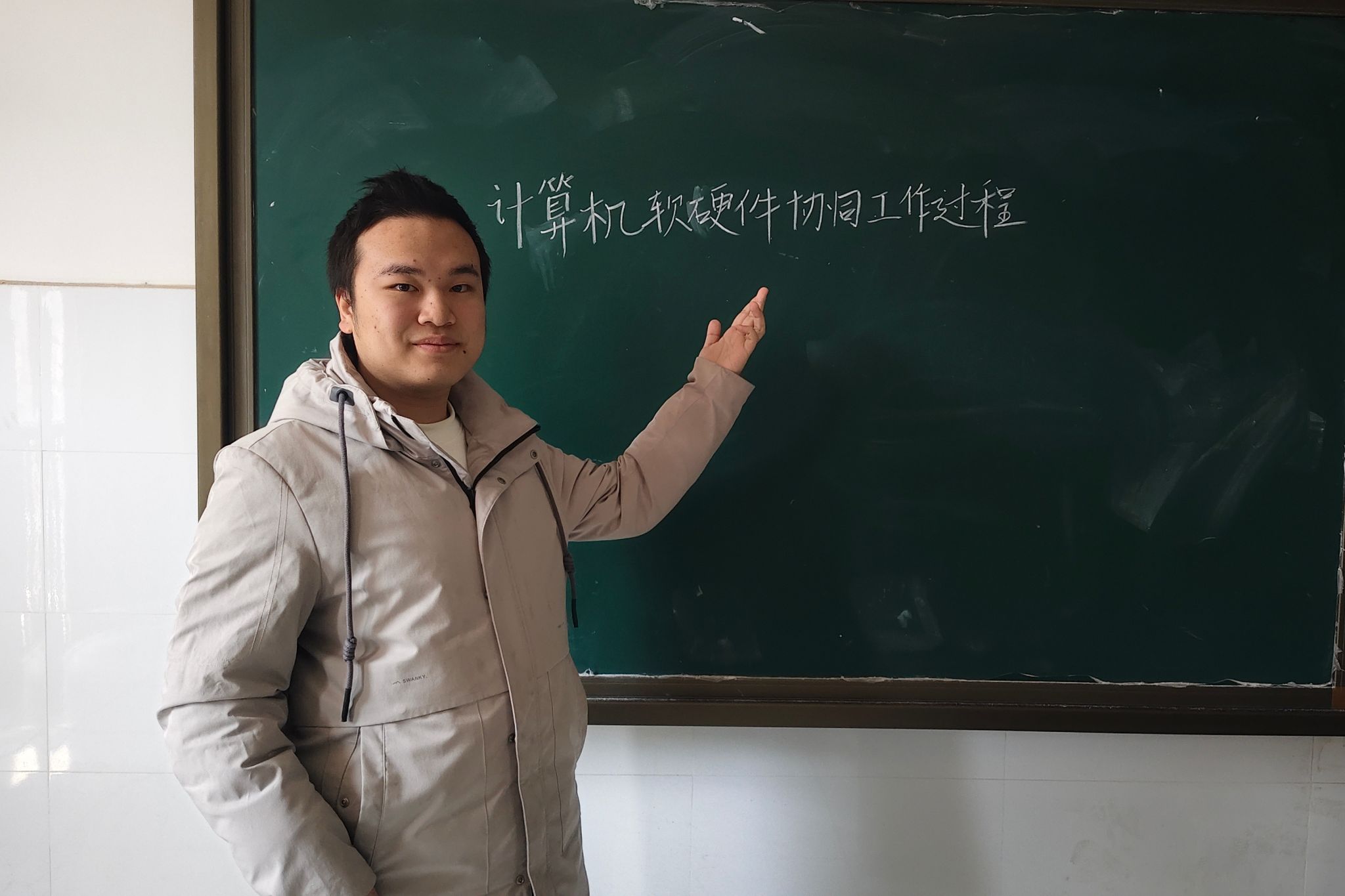 课堂上,谢宇凡创造性地运用角色代入教学法,将学生熟悉的"疯狂星期四"点餐场景转化为教学案例。通过模拟餐厅电子点餐系统运作,引导学生从用户、开发者双重视角,系统解析硬件设施、系统软件与应用软件的协同机制。授课过程中,谢宇凡引导学生通过角色扮演互动,模拟退餐流程操作,使抽象的信息技术概念具象化,有效激发了学生的探究热情。