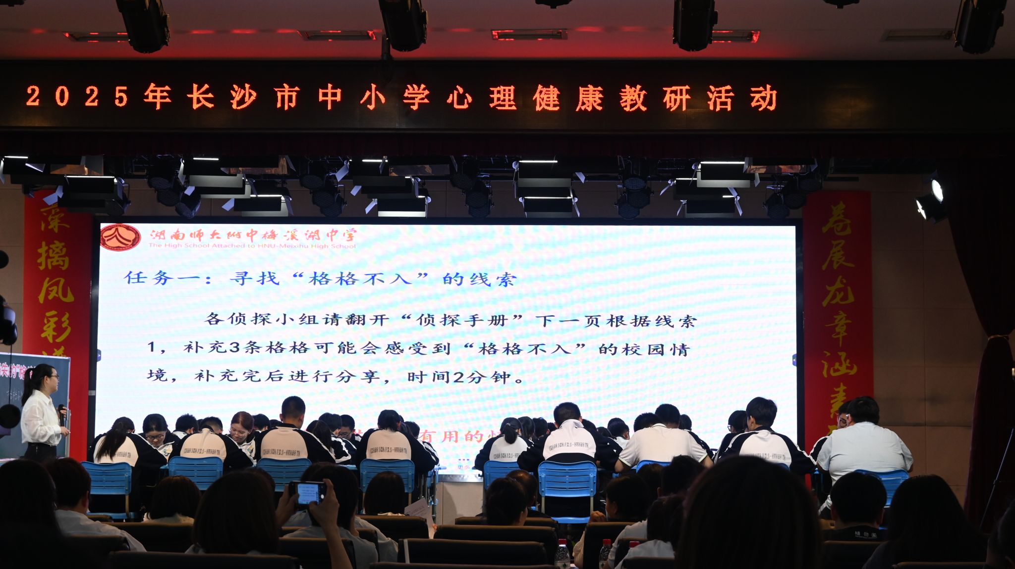 下午,长沙市一中广雅中学校长吴军以校史为切入点,阐述心理健康教育与学校育人理念的融合实践,正式拉开高中段教研序幕。高二课题《格格不入时》呈现创新教法:赵靖以“故事续写”为载体,要求学生分组创作并演绎应对社交困境的解决方案;吴娇则设计沉浸式剧本杀,通过角色扮演与线索推理,让学生在情境中体验人际边界建立技巧。分组研讨环节中,与会教师围绕两节课程的内容设计、学生参与度及教学实效性展开专项讨论,重点分析情境化教学法的适用边界与优化方向。