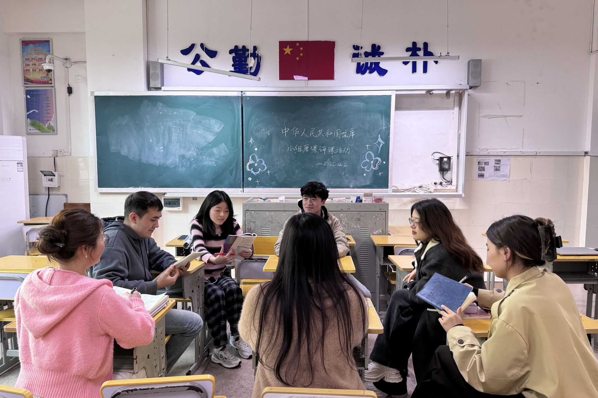 (通讯员 陈洋燕 张丽汶)4月2日下午,教育科学学院赴长沙市中雅培粹学校实习队于教学楼101教室开展以“中华人民共和国主席”为主题的集体磨课活动。初二组全体实习队员参与。