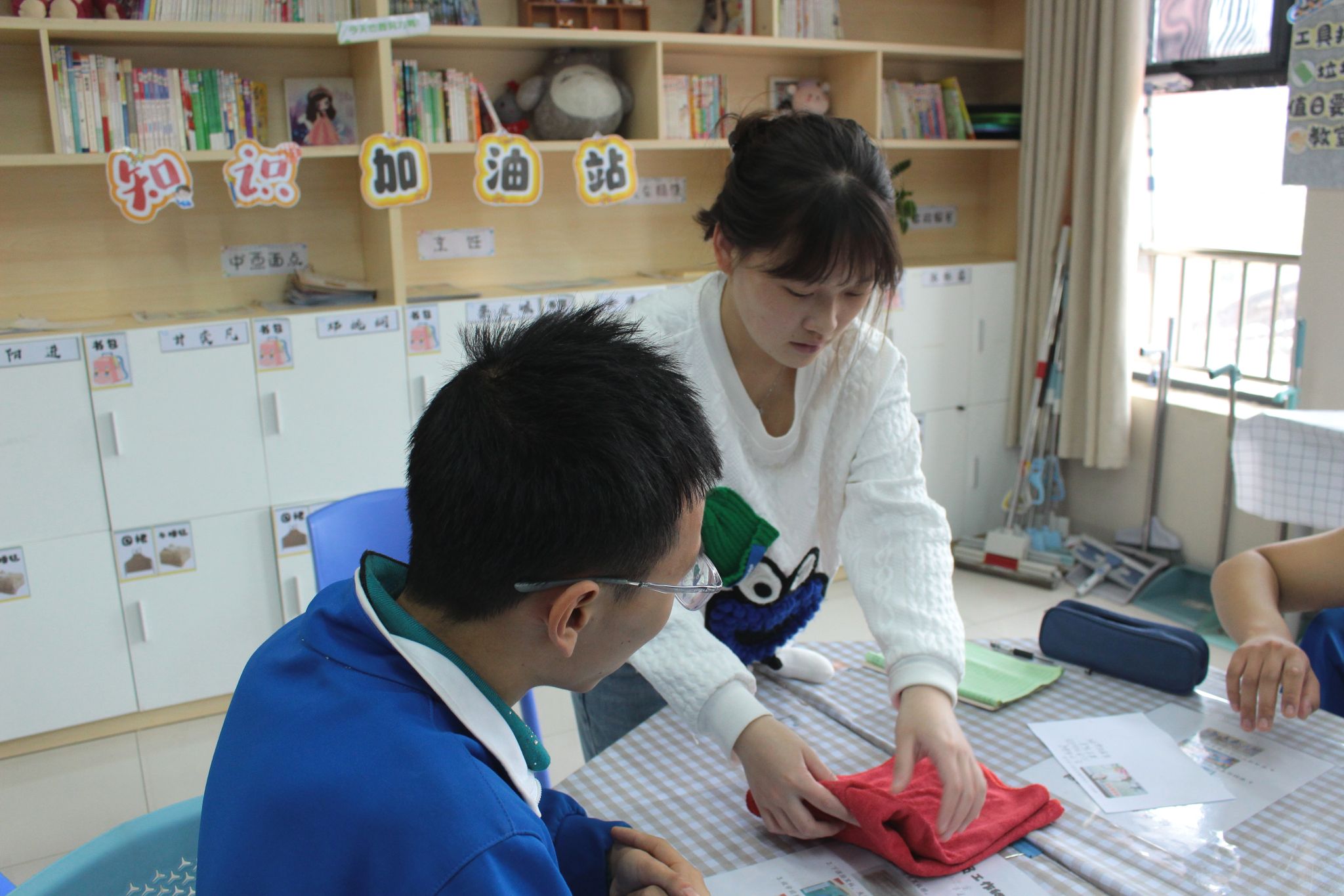 (通讯员 胡涛 严雨菲 黎思娆)4月7日下午,长沙市特殊教育学校(望城校区)职高部Z2402班于教室内开展了职业实践培训。此次培训主题为家政服务,共计2个课时。职高部罗曌玺担当主讲老师,赵云艺担当辅课老师。实习队员胡涛、严雨菲随堂观摩并协助指导学生参与实践。