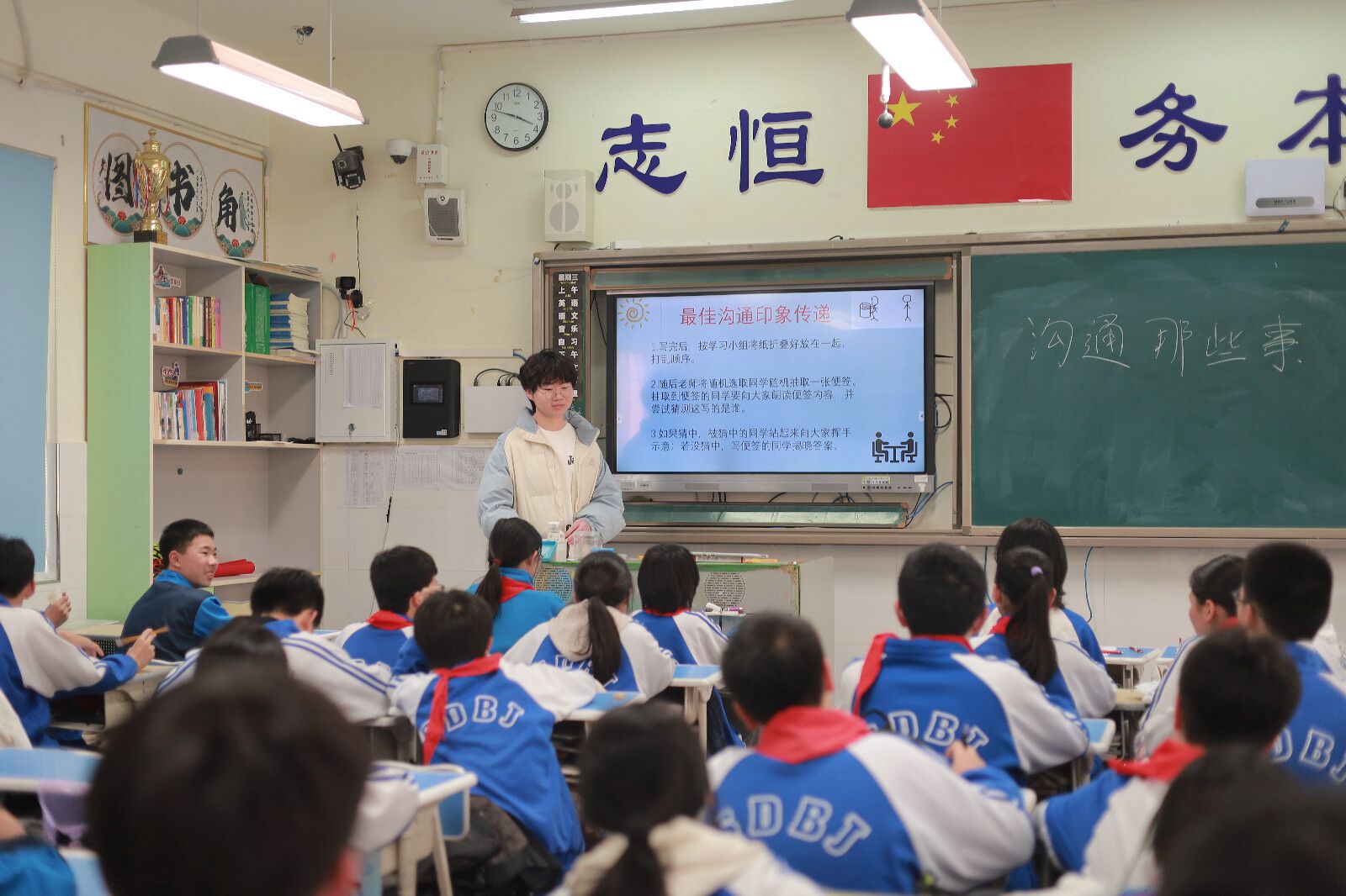 (通讯员 谭蕊玉 刘燕)4月7日下午,教育科学学院赴师大滨江学校实习队顺利开展第二次课堂教学活动。实习队员游子建以“沟通那些事”为主题,为学生们带来了一堂生动有趣的心理课。