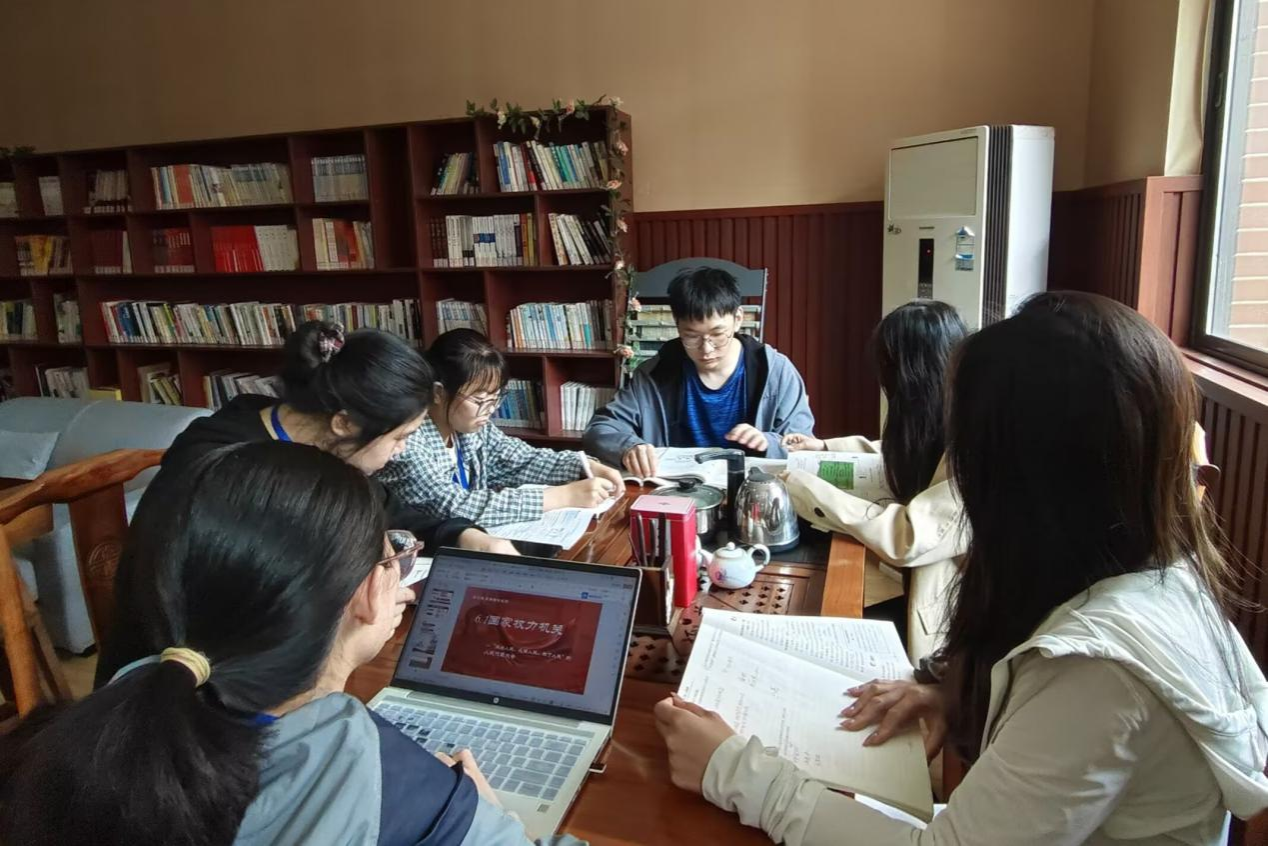 此次活动聚焦八年纪下册道德与法治第六课的“国家权力机关”与“中华人民共和国主席”两个框节进行课堂复盘与问题剖析。在对“国家权力机关”的回顾讨论中,实习队成员指出教学过程中的问题,如教学设计与作业联系不够紧密,重点词汇标记存在偏差以及教学内容的连贯性不足等,同时,结合带教老师的评课意见,提出相应对策及改进措施。针对下周即将讲授的“中华人民共和国主席”框题内容,实习队成员依次分享自己的教学思路和课堂设计,其他成员给予意见,并相互交流讨论,完善教案设计。最后黄俊霖对下周实习队员的课程安排进行汇总并对后续实习阶段的教学进程作出安排。