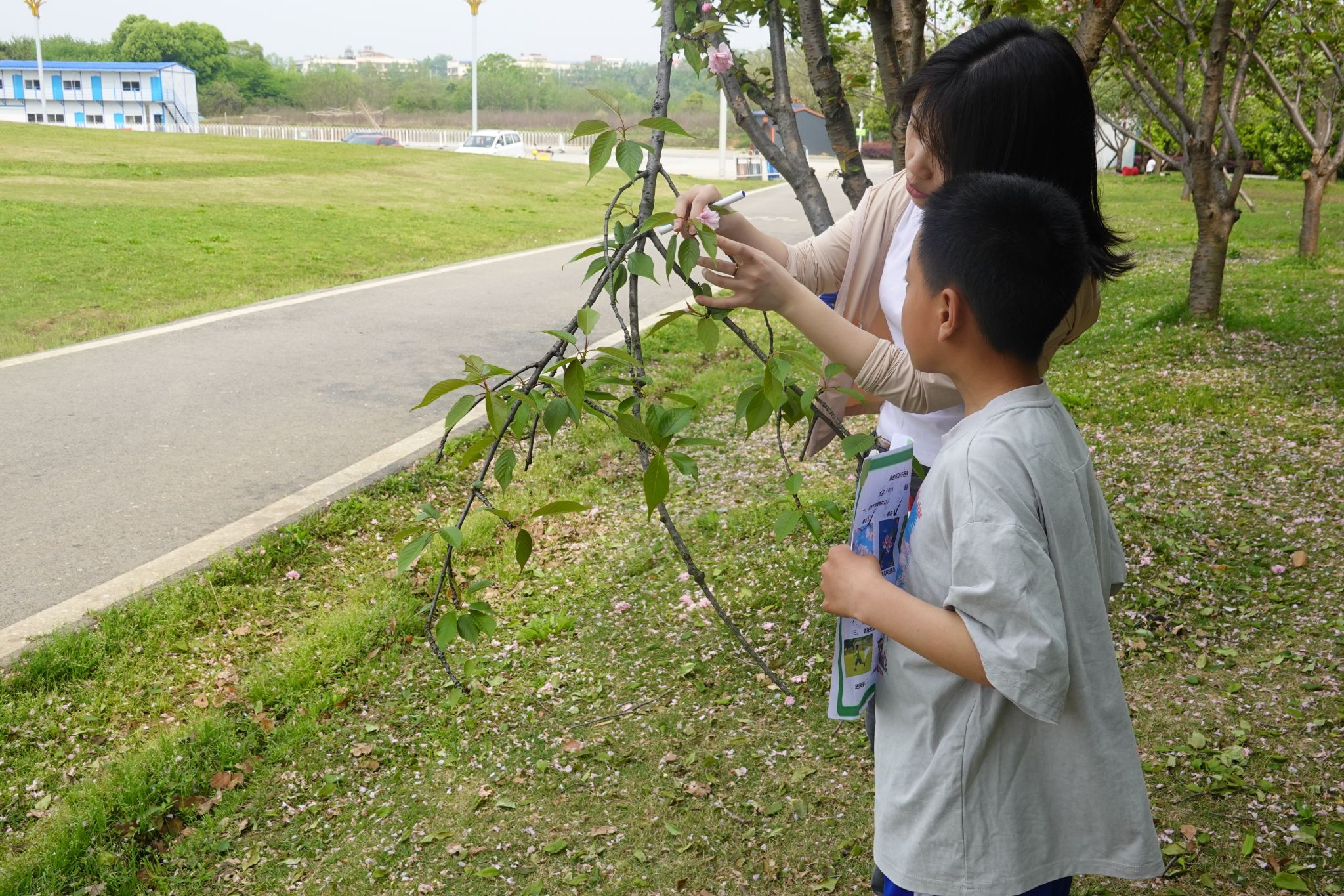 在学校集合完毕后,实习队队员屈清华、向心雨和学校教师们带领学生前往公交车站候车,由学生自主完成排队候车、自主投币等实践环节。学生们全程保持车厢安静,展现出了良好的公共交通素养。进入玉湖公园后,学生们拿出任务单,并在实习队队员的协助下展开任务挑战,他们需要在公园内找到课堂中学过的樱花、桃花、樟树等植物并在任务单上打勾。在风筝创作环节,学生们用水彩笔在空白风筝上描绘春日图景,有的用蓝色涂抹出心中的天空,有的以粉色画出朵朵盛开的小花。完成创作后,实习队队员带领学生分组放飞风筝,在奔跑中感受春风。活动最后,实习队队员与特校教师组织学生围坐进行野餐,学生们互相分享食物,共享春日美好。