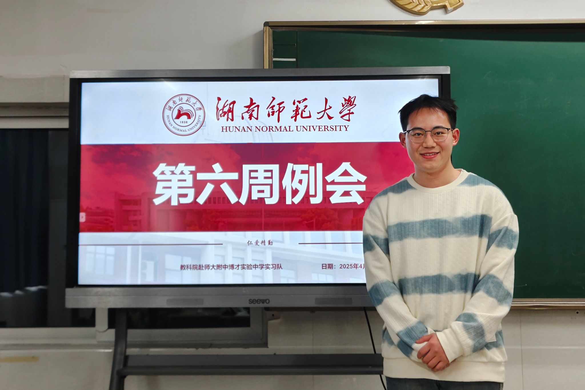 (通讯员 徐微 舒秋菊)4月18日下午,教育科学学院赴湖南师大附中博才实验中学天顶校区实习队召开第六周工作例会。会议聚焦实习阶段性总结与任务部署,由队长王如心主持,指导教师罗建国及全体队员参会。