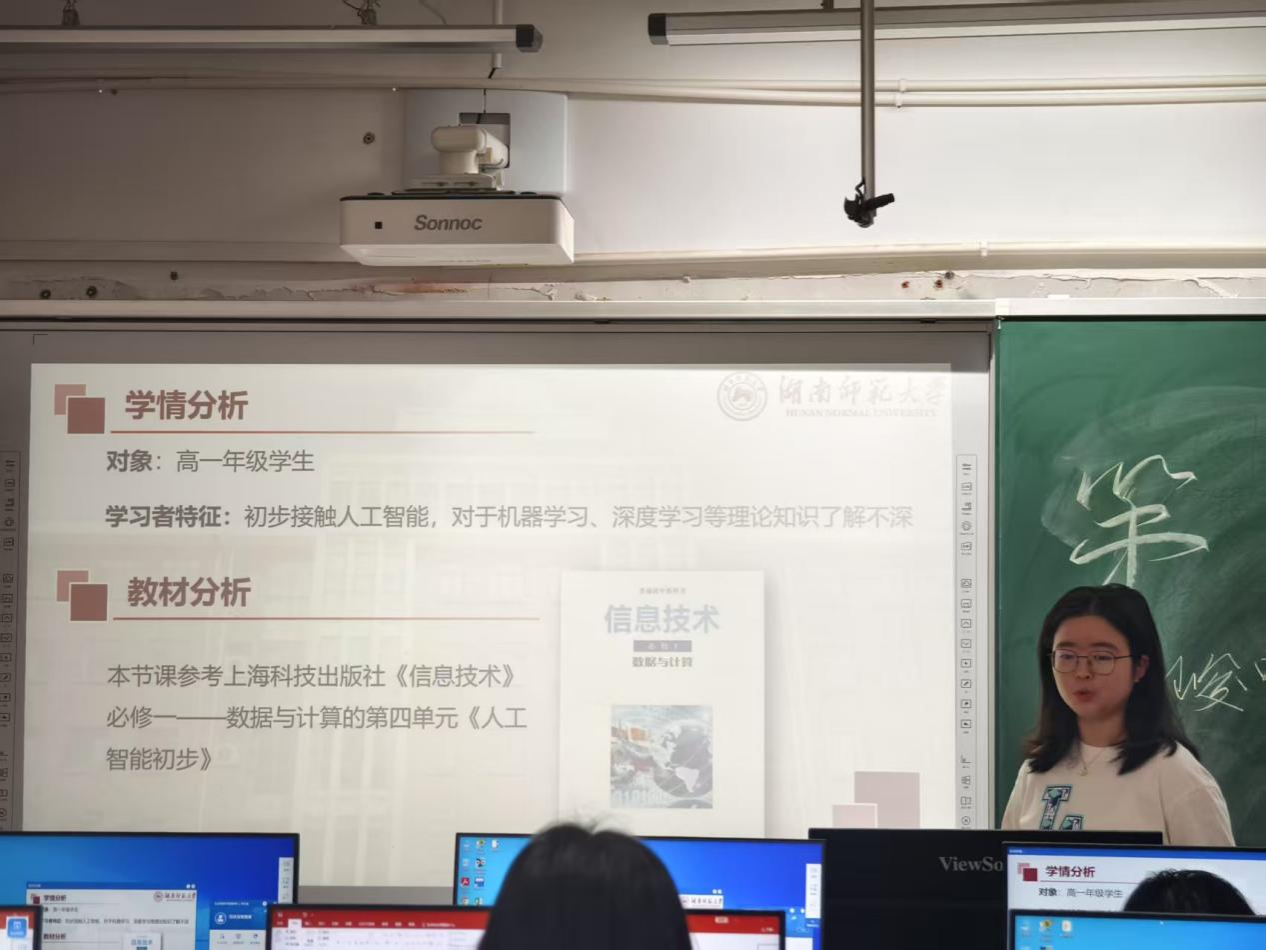 (通讯员 李可尧 颜子涵 胡雅霞)4月18日上午,教育科学学院赴长沙市第一中学实习队与该校信息组全体教师在科艺楼开展第六次集体备课活动。本次活动围绕“人工智能(三)”教学主题展开,首次创新采用“说课-学生互评-老师指导”三位一体研讨模式,长沙市第一中学信息组全体老师以及实习队全体成员参与此次活动。