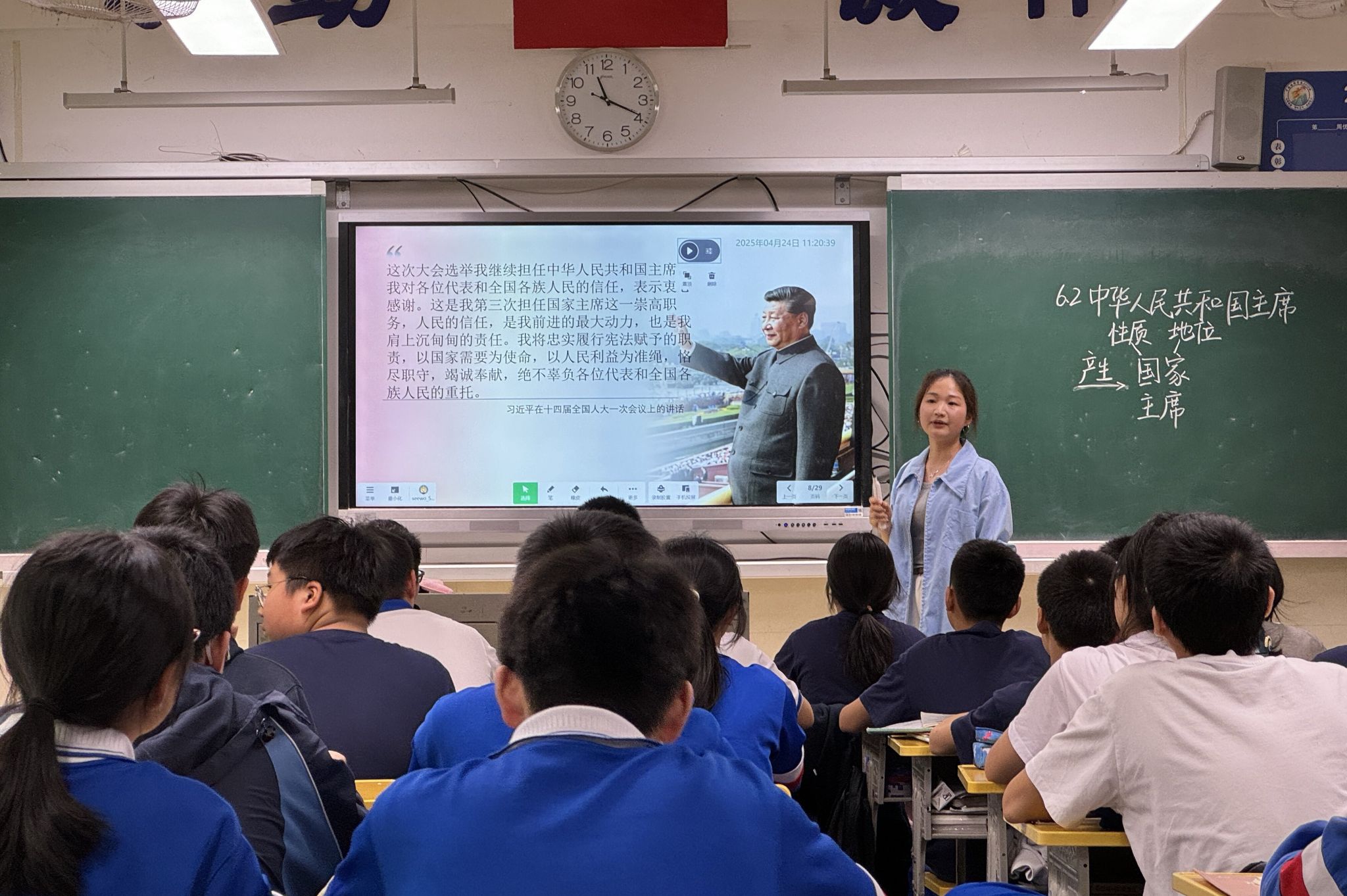 (通讯员 陈洋燕 张丽汶 吴俊华)4月24日上午,教育科学学院赴长沙市中雅培粹学校实习队于行政楼605教室开展第七次集体评课活动。实习队员邹世丹围绕“中华人民共和国主席”展开授课,指导老师李新、陆小波以及北校区初二组实习队员参与观摩并点评。