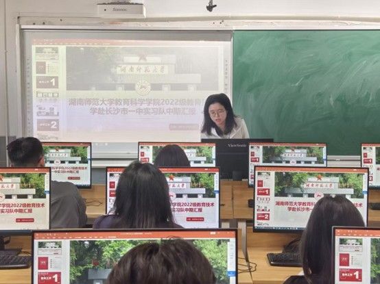 (通讯员 米峻甲 朱焱琳 李晓)2025年4月25日下午,教育科学学院赴长沙市第一中学实习队在科艺楼五楼1号机房进行了实习工作的中期汇报交流会。本次会议由实习队长米峻甲主持,带队老师刘文胜以及实习队全体人员参加。