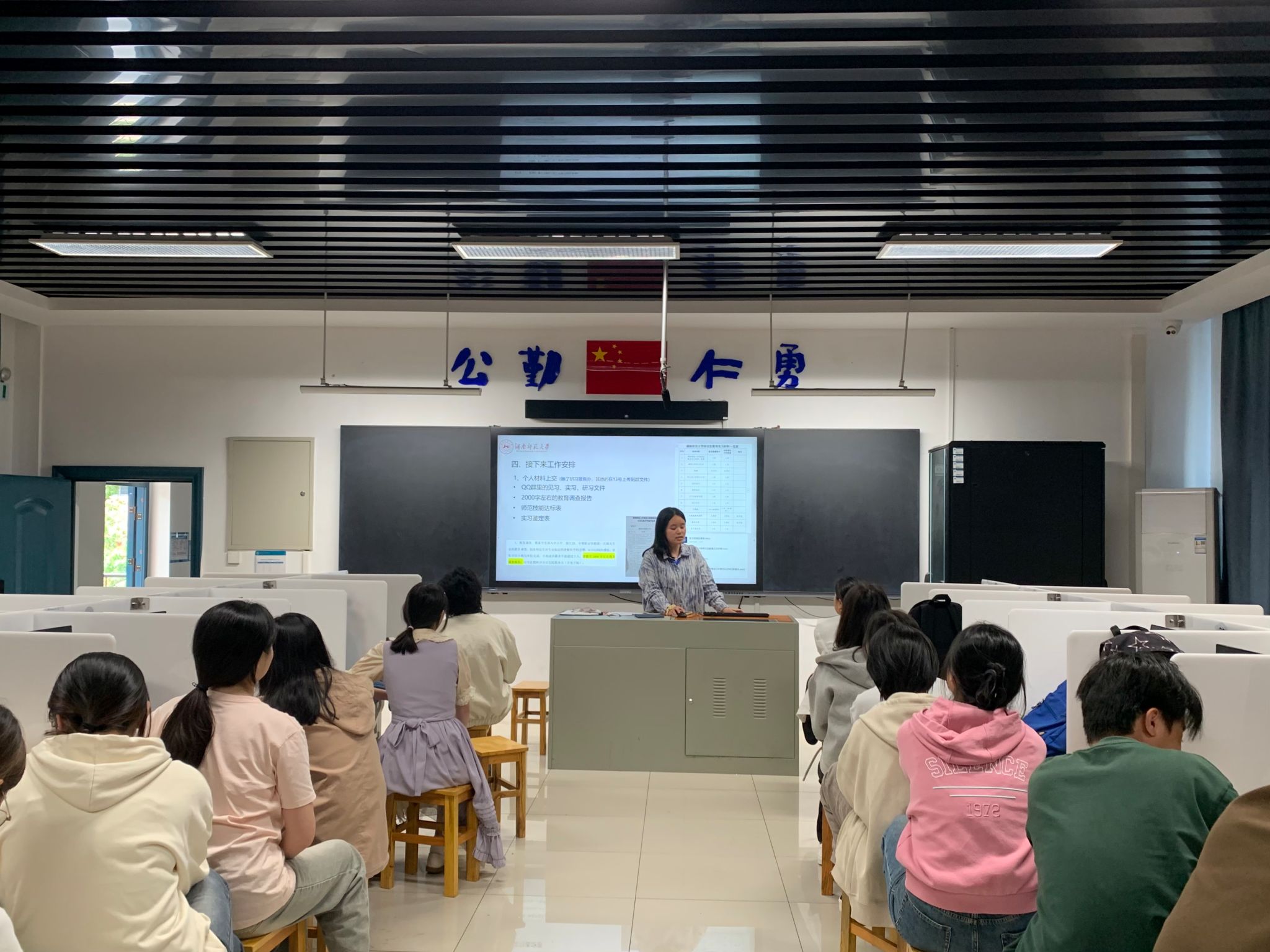 (通讯员 张金敏 张佳琪)5月9日下午,教育科学学院22级教育技术学赴师大附中实习队于高阳楼机房召开第十周实习总结会,会议由实习队队长张佳琪主持,指导教师刘娟及全体实习队成员参会。