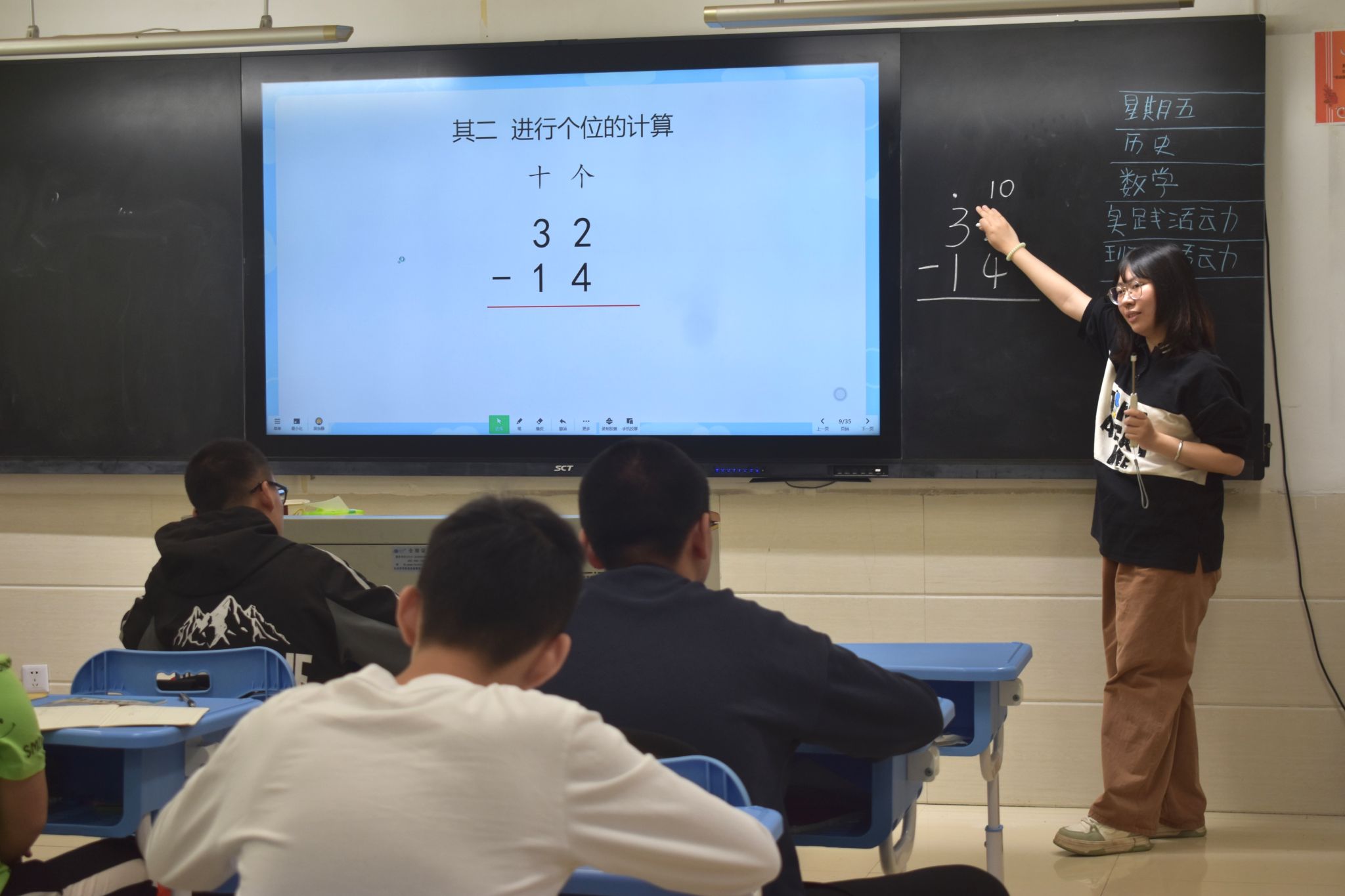 比赛现场,实习生蒋晓旸运用感官教学法,引导学生通过视觉、听觉与触觉感知事物,课堂氛围活跃,学生参与度高;实习生李至德运用讲述法,生动阐释文字起源,帮助学生理解汉字由来,取得良好教学效果;实习生吴怡静在生活数学课堂上耐心细致,针对学生疑惑之处反复讲解,帮助学生更好理解计算方法。全体实习生依据特殊学生的身心特点,精心设计教学方案,从生动有趣的课堂导入,到循序渐进的知识讲解,再到多样化的互动环节,充分展现了扎实的专业素养和创新的教学思维。