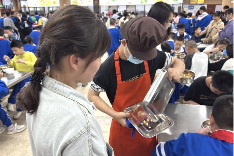 (通讯员 胡涛 黎思娆 张芸溪)5月14日下午,教育科学学院赴长沙市特殊教育学校(望城校区)实习队在食堂参与职高部职业实践教育活动。此次职业实践活动由职高部教师廖子乐、职高部教师邢睿玲统筹组织,实习队员则负责协助职高部学生系统完成餐厅全流程服务工作。