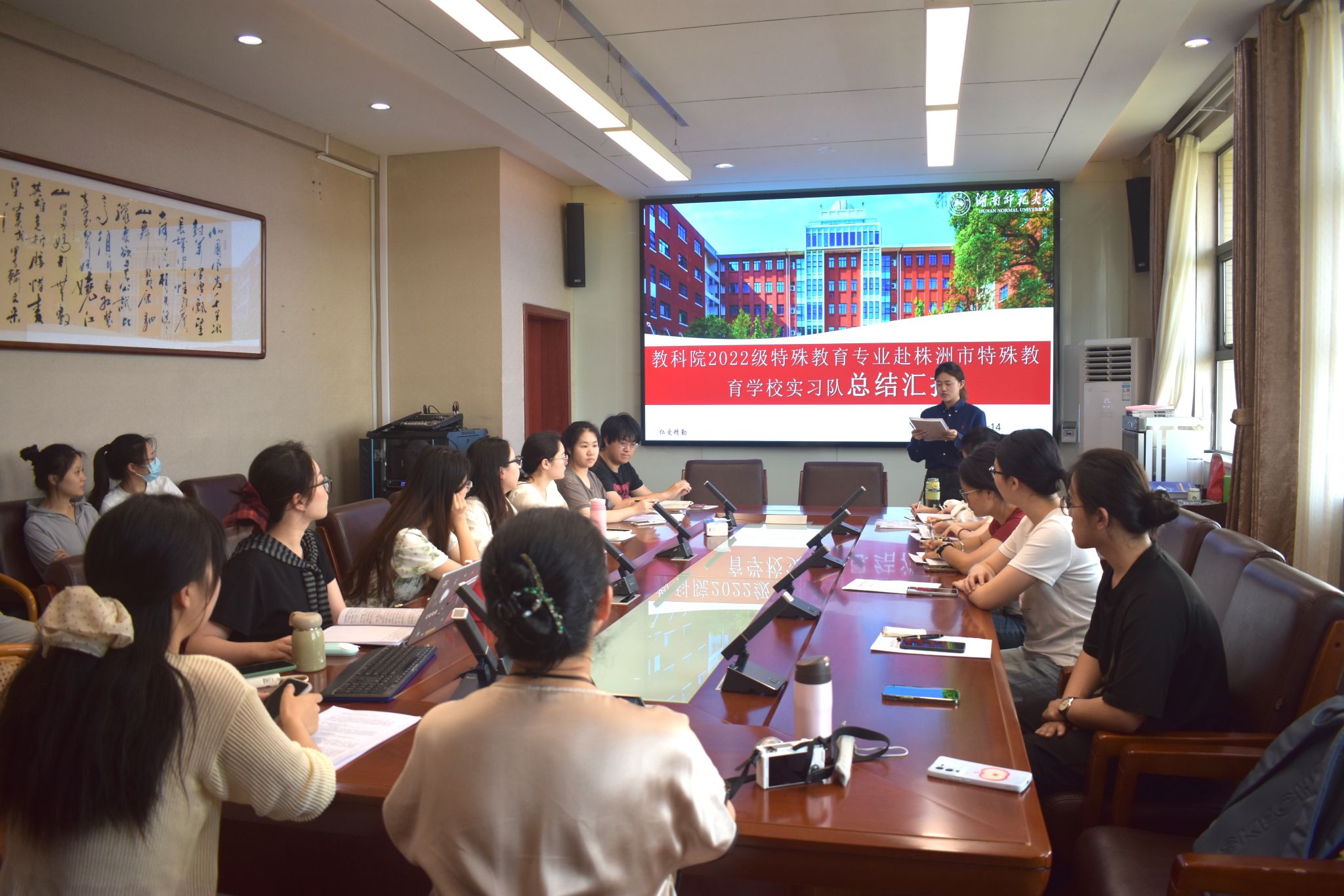(通讯员 马玉婷 何滟璟 韩佳瑞)5月14日下午,教科院2022级特殊教育专业赴株洲市特殊教育学校实习队于株洲市特殊教育学校崇德楼三楼会议室召开实习生展示课总结汇报会,株洲市特殊教育学校副校长王金花,课程发展中心主任张慧玲以及实习生指导老师出席,全体实习队员参与。