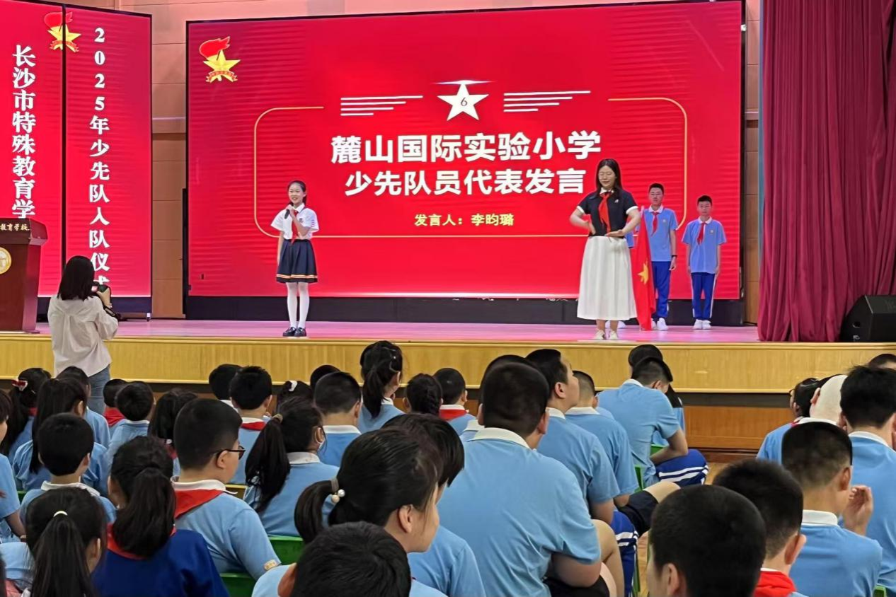 启明部学生于宏博作为新队员代表发言,分享自己对红领巾的理解,并表示将牢记责任,努力提升自我。随后,麓山国际实验小学学生李昀璐代表老队员发言,并与队员共同表演手语舞,表达对新队员的欢迎。
