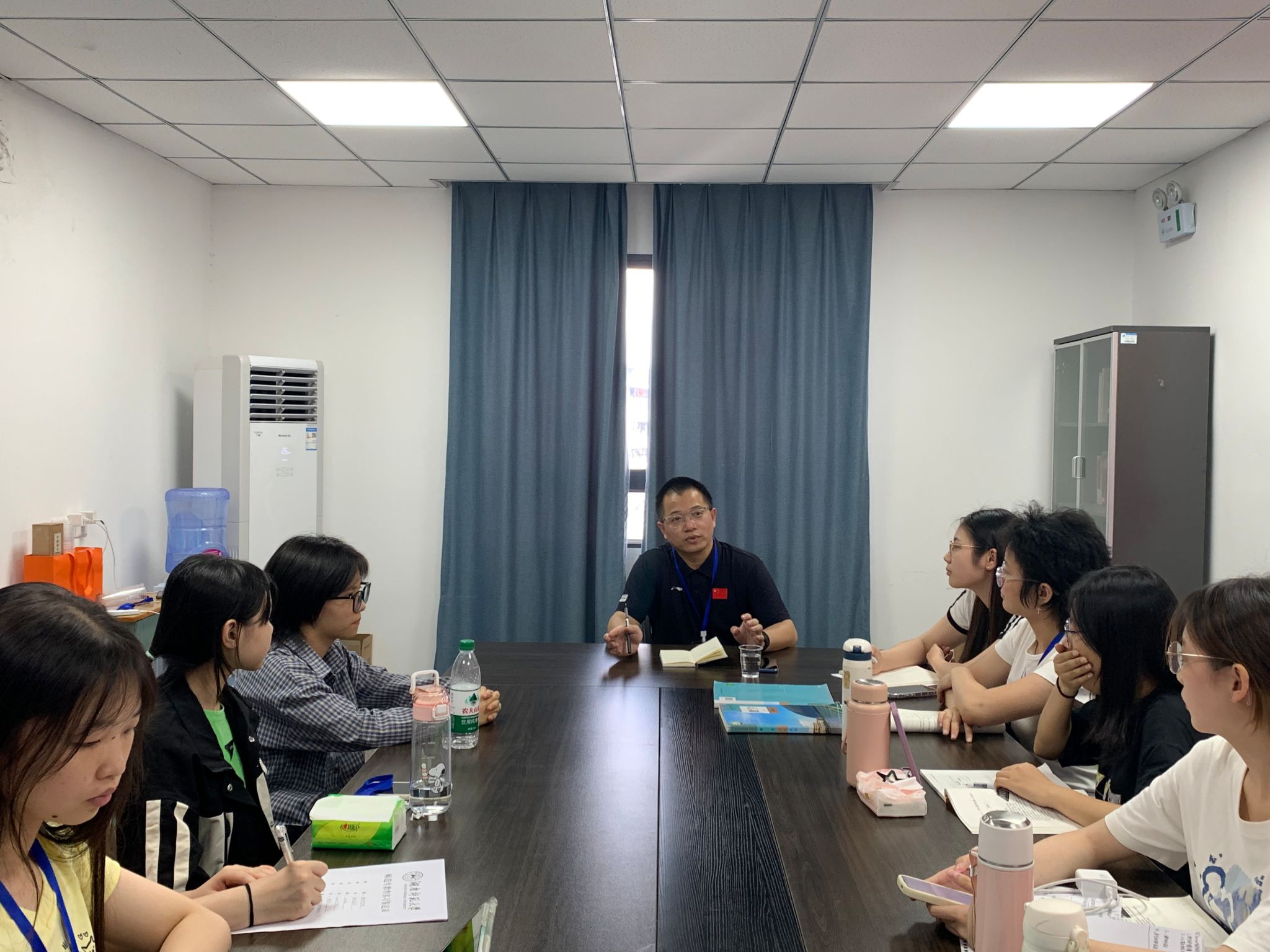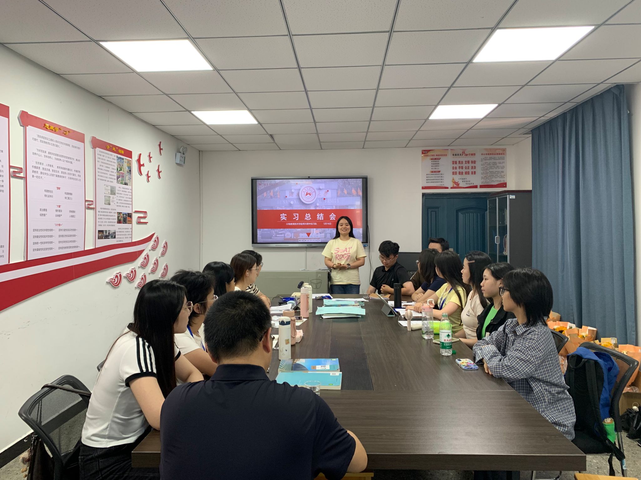 (通讯员 王玲珑 张金敏)5 月 16 日下午,教育科学学院 22 级教育技术学赴师大附中实习队在高阳楼教研室召开第十一周实习总结会。会议由实习队队长张佳琪主持,指导教师刘迪及全体实习队员参与。