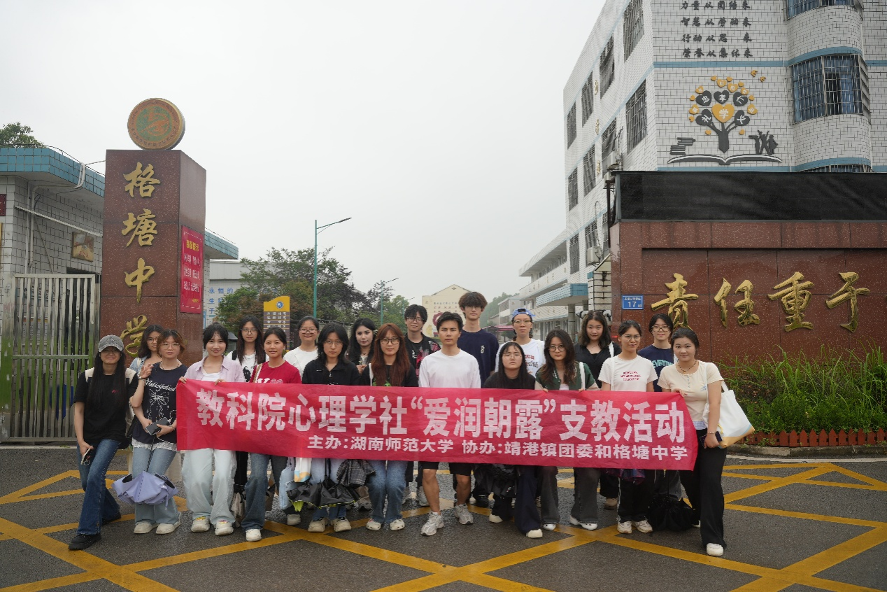 (通讯员 谢昊楠 罗艺馨)5月28日下午,教育科学学院(以下简称“教科院”)心理学社的20名志愿者前往长沙市望城区靖港镇格塘中学,以“五育并举,为心赋能”为主题,开展团体心理辅导活动动,格塘中学校长刘友、教务主任粟蒙凯接待了志愿者队伍,心理学社负责人黄桢琳组织此次活动。