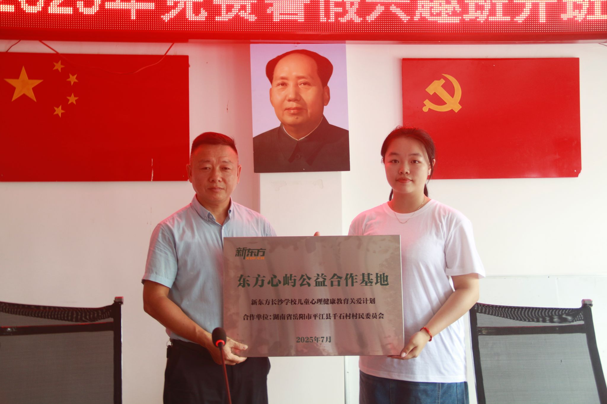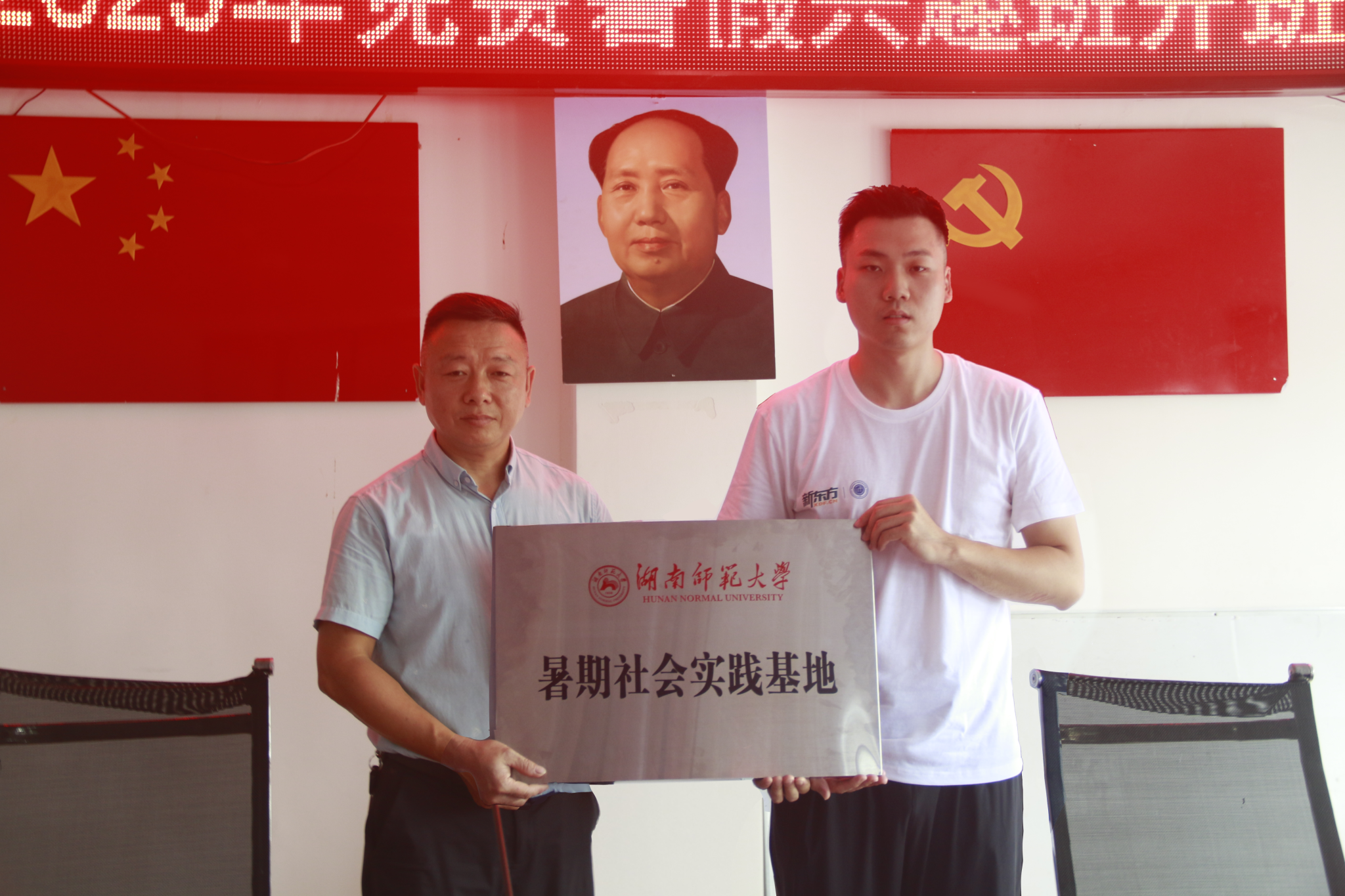 授牌环节中,吴凡代表湖南师范大学团委向千石村授牌,实践团队长代表新东方长沙学校完成授牌。最后,陈卫民宣布暑期社会实践活动正式开营。