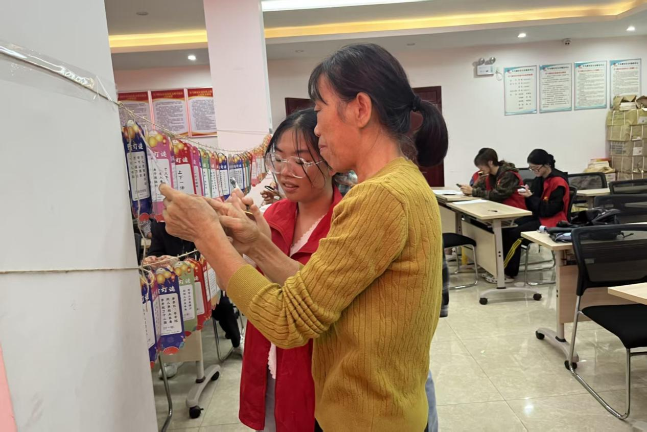 活动围绕中秋游园主题设置了5个不同的摊位。签到兑换区志愿者负责活动盖章,登记信息,为老人们发放对应奖品;灯笼制作区志愿者分步演示剪纸、折叠、粘贴流程,让老人学会灯笼制作方法,并协助老人完成作品;零食套圈区志愿者为老人们讲解并示范套圈技巧,让老人体验传统游戏的乐趣;香包制作区志愿者指导老人填充香料、缝合封口,与他们共同感受手工工艺与节日文化的融合;猜灯谜区志愿者负责核对谜底答案,让老人在猜灯谜中学习传统文化知识。此外,志愿者时刻维持现场秩序,保障老人的安全并确保活动的顺利进行。